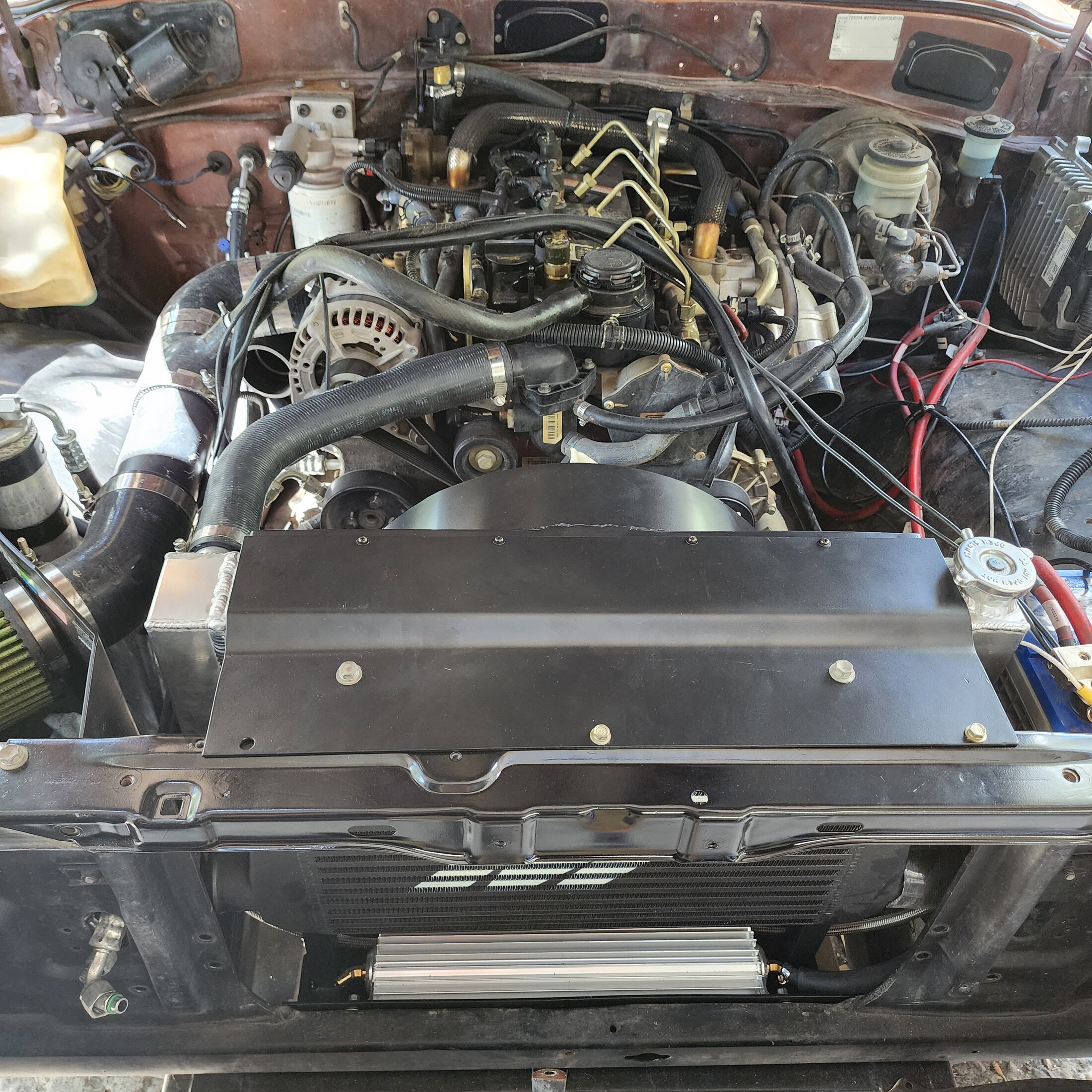 Did you weld in a piece of flat bar along the bottom? Was your core bent?Cracked the radiator from the initial swap installation so I opened up the trash can then started on v.2! Much better this way. Top and bottom subframe for the Rad/IC/PS Cooler, new shroud, 2F mech fan and clutch (new 20K Silicone Fluid), and machined up the adapter to fan. WHEW