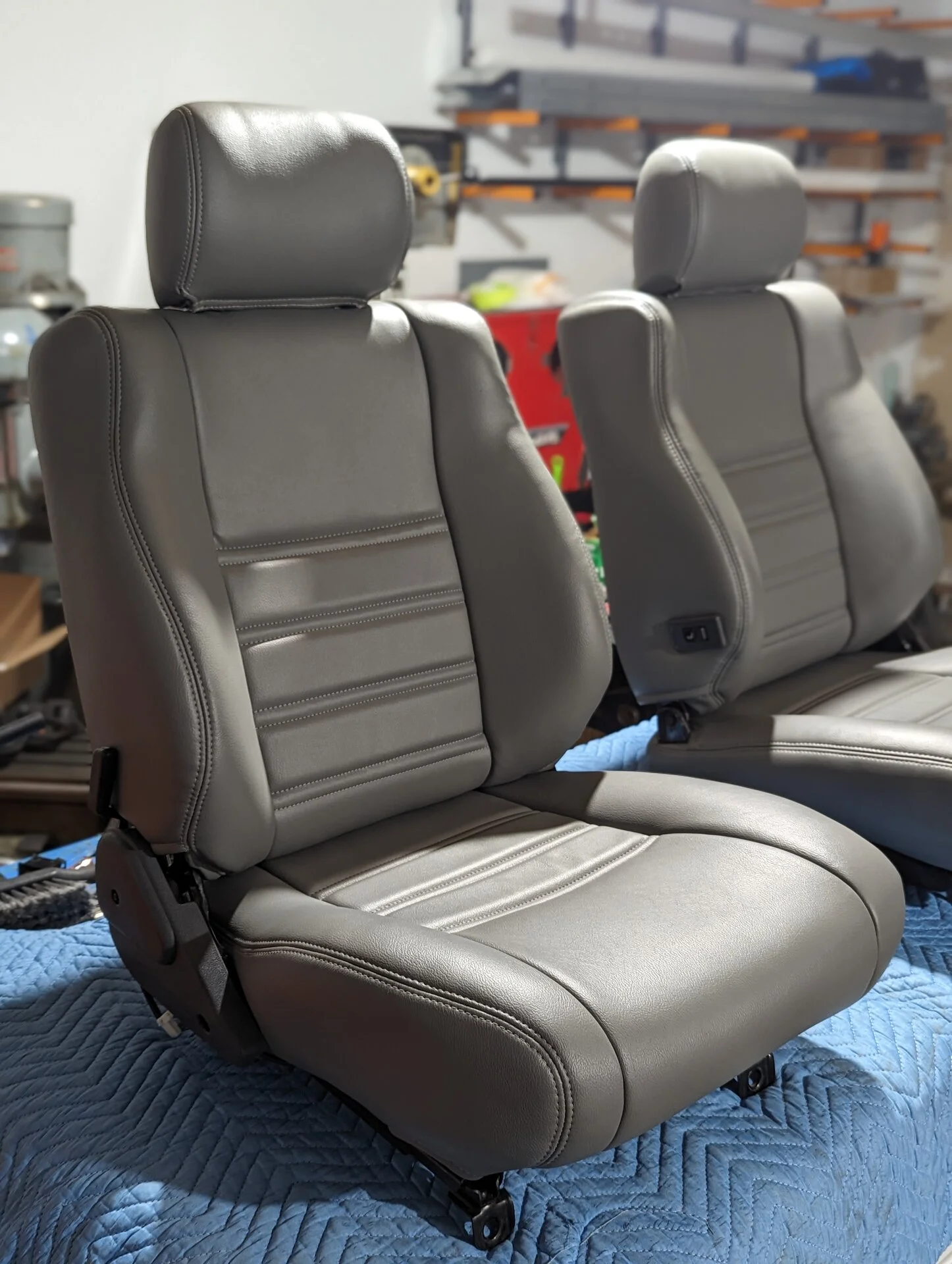 I'm rarely happy with things because I always see room for improvement, or because I find where the corners were cut, or because someone just phoned it in and said "yeah, that'll work"...but I'm happy with these results. I'd like to give Mike Witecki at Deschutes Upholstery in Olympia, Washington some well-deserved credit for doing a fantastic job at realizing the goal that I set: a modified factory seat that would wear, function and look better than the factory cloth-covered options. I think he delivered in spades; he rebuilt the parts that needed attention, replaced and modified the lower bolsters to make them a bit more comfortable for me, installed full-size seat heaters and trimmed up everything to reduce and simplify the number of seams while keeping the factory Toyota look, and he did it all within the budget that he originally quoted. I'm my opinion, they look