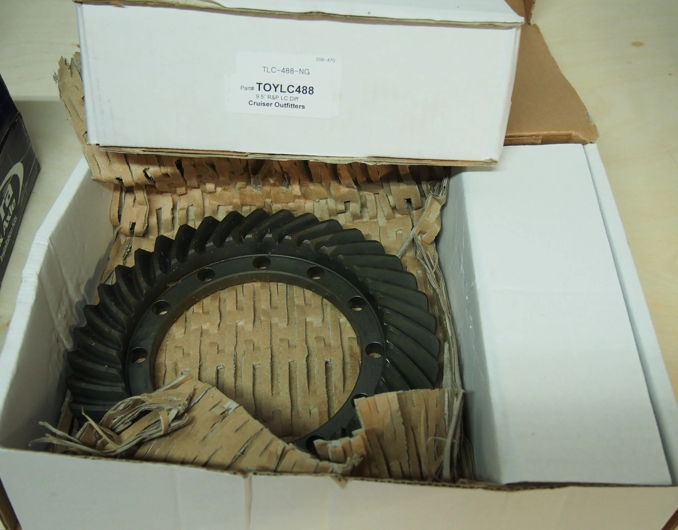 OK boys and girls here we have some brand-new parts in their (mostly) unopened boxes. One of the guys in our club thought about regearing and locking his 40 but had a change in plans so these are available. Selling two sets of 4.88 gears (current price $268 each) and two Sierra gear installation kits current price $154 each. That comes to $844 in today's prices, we'd like to get $575 for the whole shebang. Will throw in a pair of rear axle seals too! Buyer pays shipping. These were purchased from Cruiser Outfitters for a 74 FJ40 and according to Kurt at CO Here's what they'll fit: