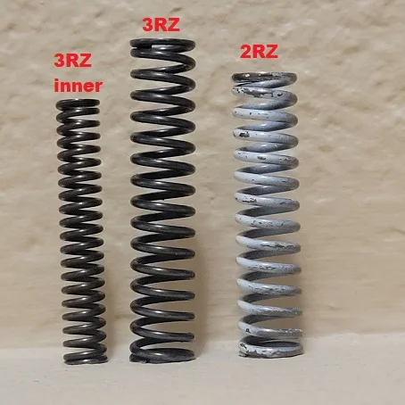 2. Oil pressure. When Robbie did the balance shaft delete it jacked up my oil pressure. Like 100psi jacked up. LC Engineering said folks run that all the time after deleting the shafts, but they did recommend removing the outer spring on the pressure relief valve. I did that, but pressure is a tad lower than I would like (40psi@3000rpm). After doing some homework I'm going to install the spring from a 2RZ (2.4L), which doesn't run balance shafts. The spring I'm running now is the inner spring (of two). The 2RZ spring is the same diameter as the 3RZ outer spring, but half way in height between the 3RZ inner and outer spring.