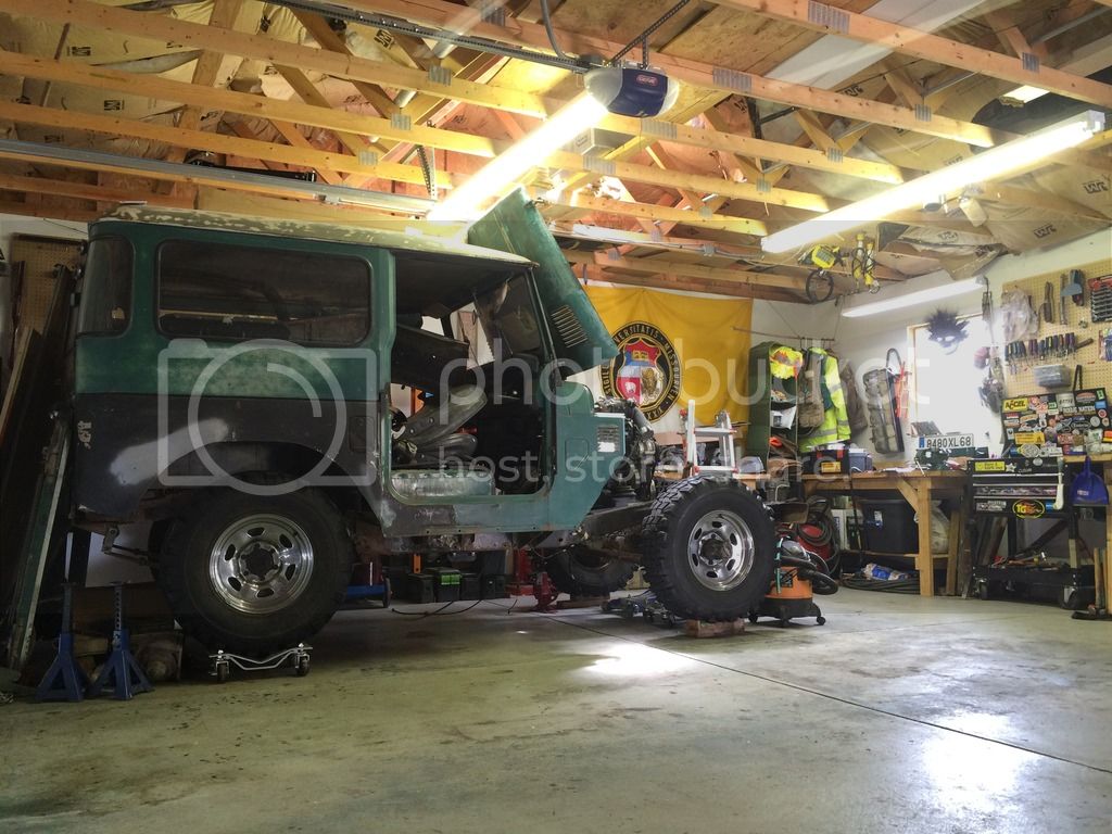 I guess we can call this progress, I brought her up over Memorial Day weekend, and rented a 10x20 storage unit for the time being. At least it's in the same zip code now (well at least the same one my mail has been going to lately). I've been on the road since then so haven't had a chance to do anything yet, but am thinking I will remove the front clip, top, doors, and windshield frame and leave them in the unit for now and bring the rest back to the garage (after I clean up what little space I have.) I am stuck with a single garage with very limited headroom, so things will be tight. I need to finish up the tranny mounts, and convince myself my engine mounts are in the right place. I don't have much clearance from the oil pan to axle, and the clutch fork is very close to the frame rail.