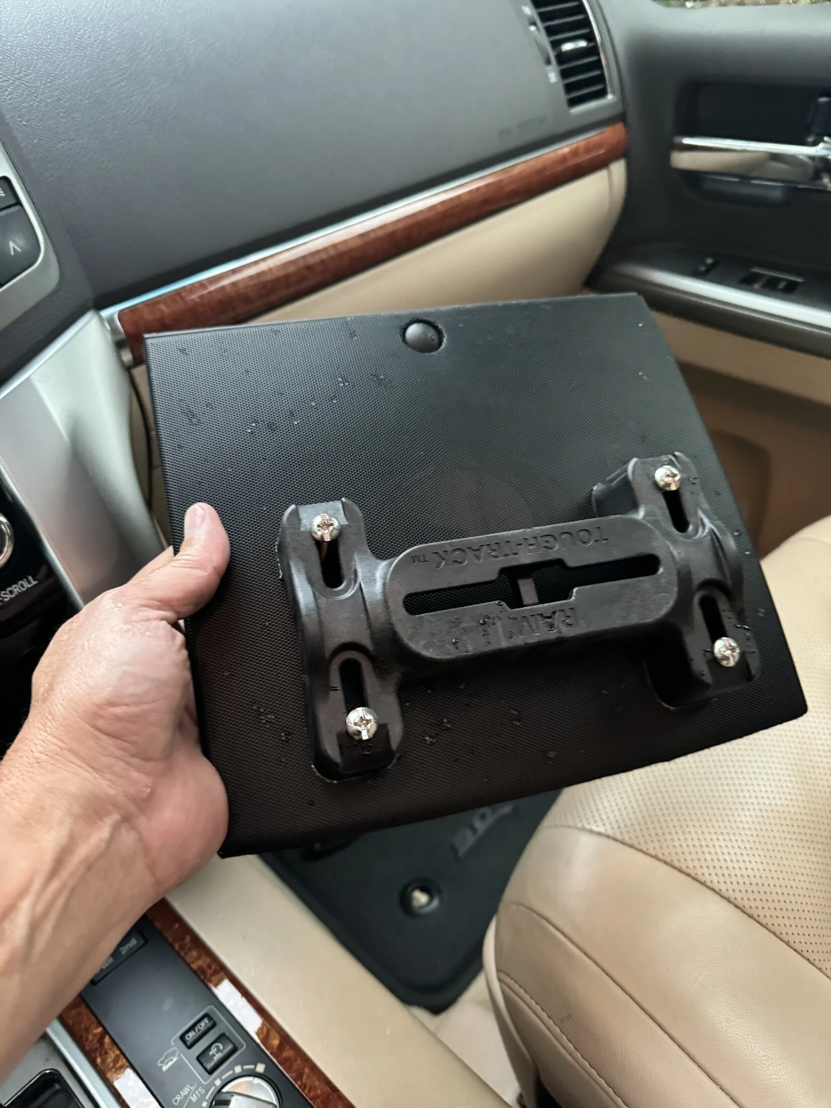 My first contribution! Took some suggestions from the forum. I wanted something that looked like it belonged to the vehicle. Something that fit but looked robust. I purchased a RAM® TOUGH-TRACK™ - 7" TRACK FOR 1 3/4" - 2" RAILS - RAP-TRACK-B7HU. The base is made out a hard plastic. I removed the dash speaker grill, covered it in tape and taped 60 grit sand disc in it. Then ground the base down until it followed the contour of the grill. Centered the mount and measured 3/4” from the edge of the grill. Drilled 1/4” holes, but first drilled small pilot holes and slow drill speed. Bought 1/4” diameter bolts 1 3/4” long, and 1” diameter washers and locking nuts, chose stainless steel just because. The holes were drilled as near to each edge of the stain the base. Then righted them. Fits perfectly and seems solid.