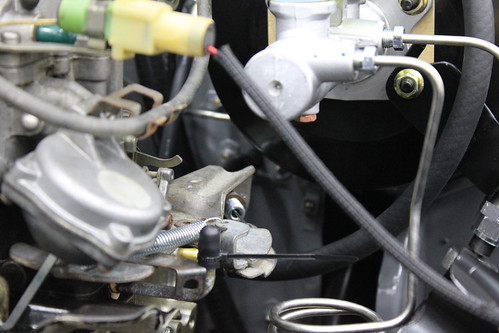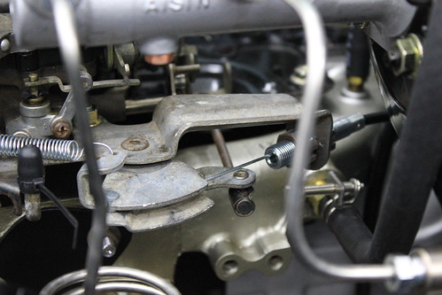I'm reassembling the throttle linkage on my stock Aisin Carb, with the bellcrank assembly and cable linkage.