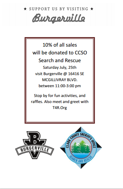 So we are kinda doing a two for one thing here... I am a member of the Clark County Sheriffs Office Search and Rescue group in SW Washington, and also a member over on T4R.org, and along with another member of both we are setting up a "car show"(truck/offroad vehicle) and meet and greet as well as a fund raiser for our SAR group -almost all Search and Rescue groups are 100% volunteer and we get no compensation for our time or reimbursement for out of pocket expenses such as fuel or gear... so we have teamed up with Burgerville to have them host and donate a portion of their sales that day to our group. in turn we bring them in customers via the car show and meet 'n greet!. if you are local or are gonna be in the area i invite you to stop by take a look check out some rigs and grab a bite to eat. this will be taking place on On Saturday July 25th from 11am till 3pm at the Burgerville on se164th ave and McGillvary Blvd. this will be our first year doing this and we are hoping to do this annually and grow the show. post up or contact me with any questions you have. thanks and hope to see some of you there!