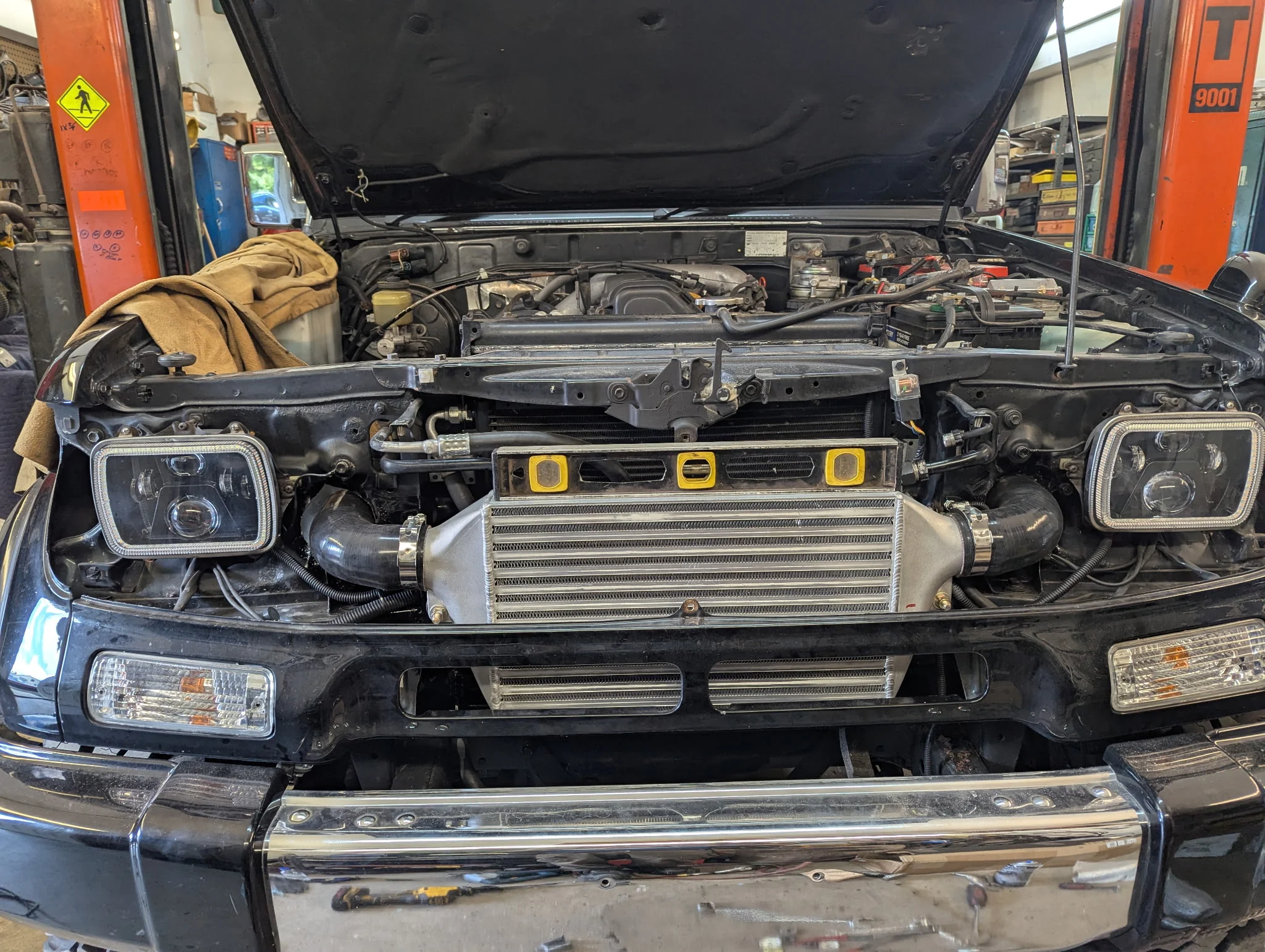 Intercooler going in! Garrett high performance…brake overhaul powered by @cruisermatt next!