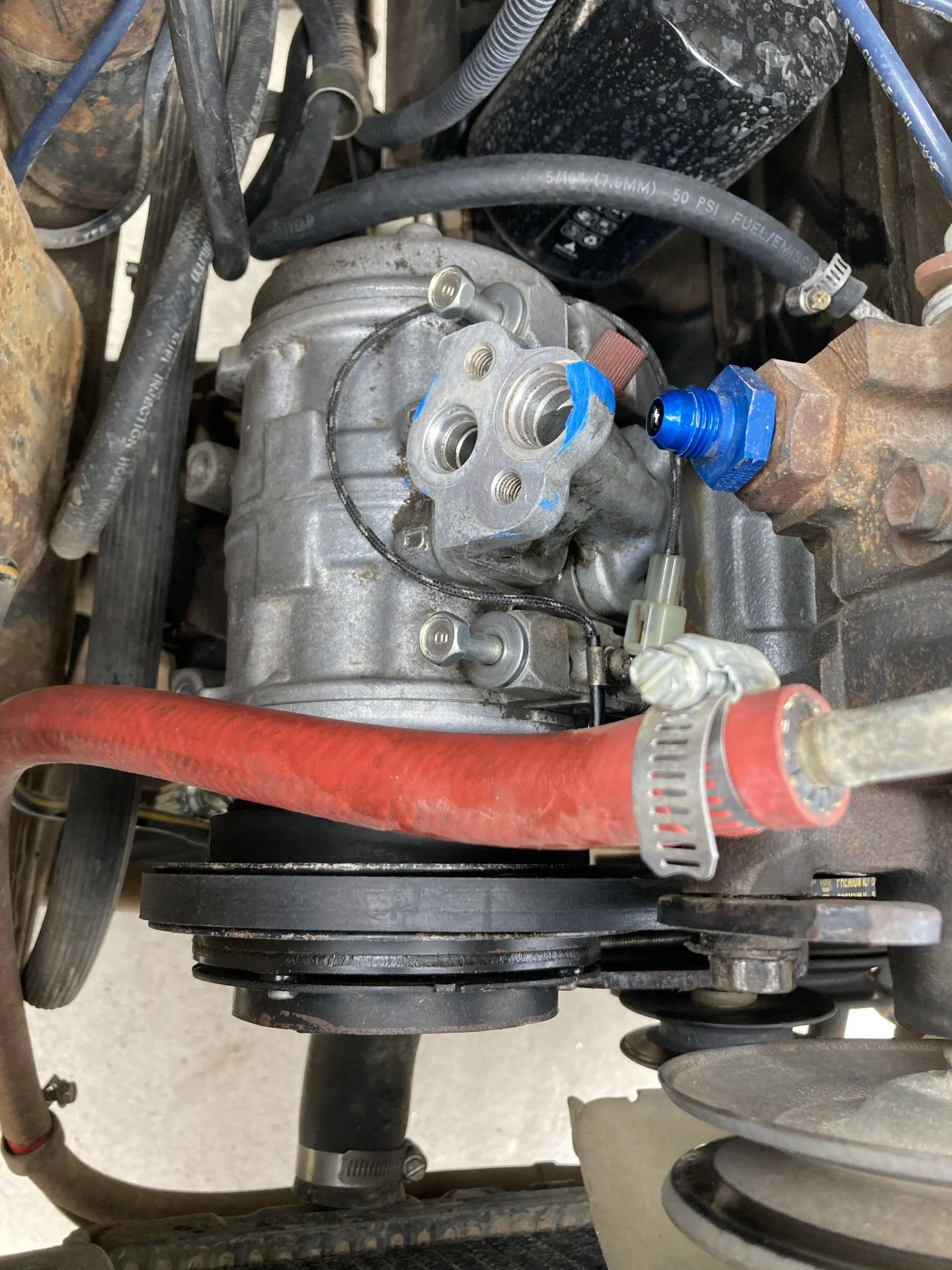 I have evaporator and expansion valve in the Pig, now a compressor, drier, pressure switch and new condensor. Next up I need some custom lines.