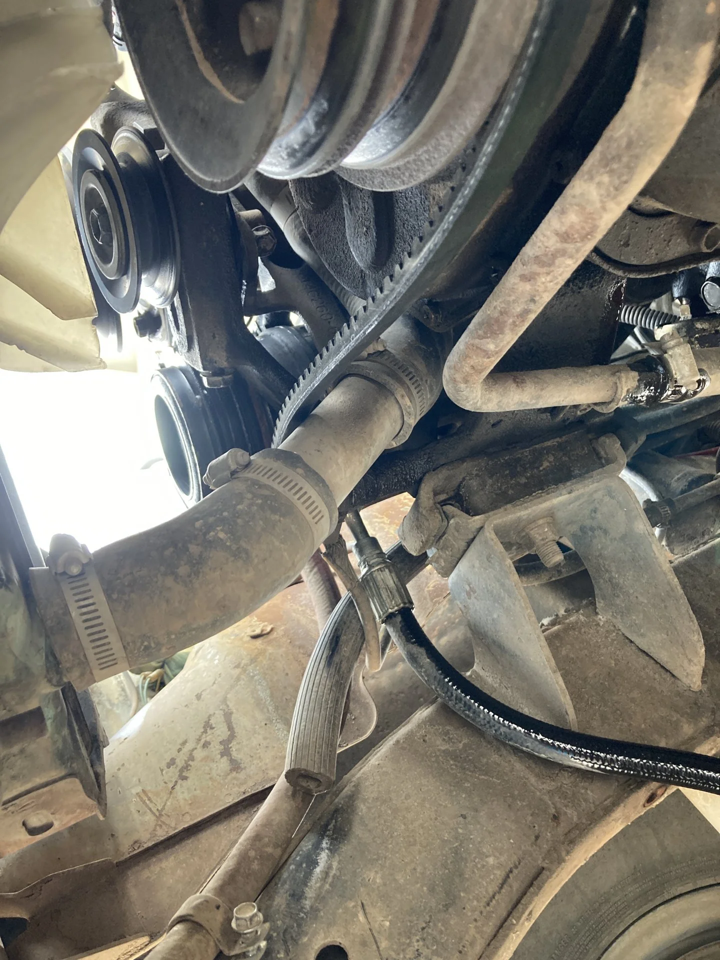 I wanted to make sure the used compressor I had was right on, so I got a new fan belt and set out to install the used AC compressor.