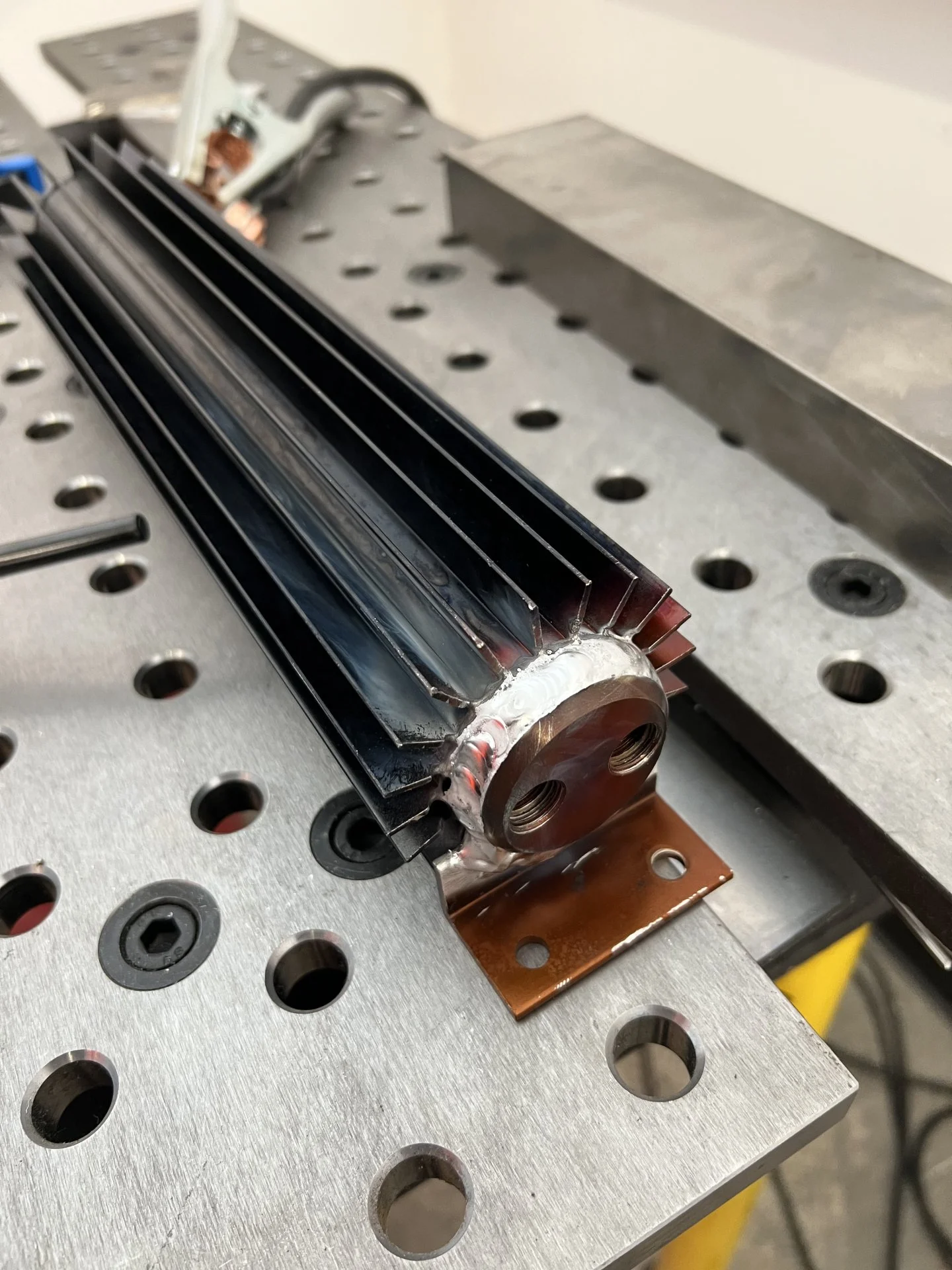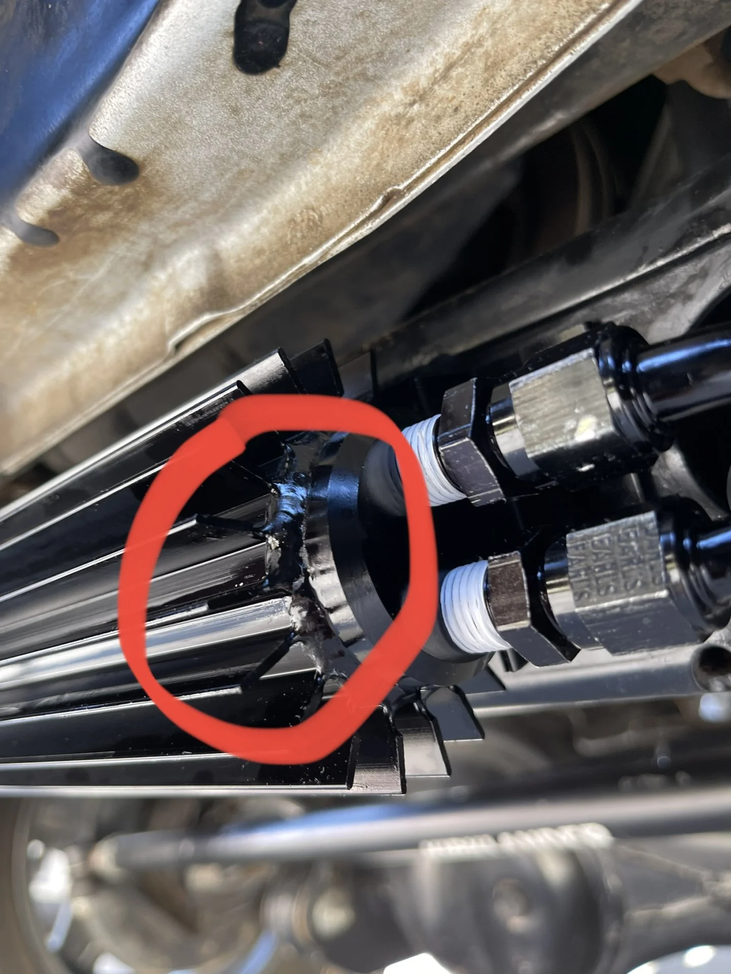 I even had a local buddy re-weld the end of the cooler on one side where it noticeably leaked. Once done, he tested it for leaks with 150psi under water and it held up for 10 minutes. After a week at King of hammers and little bit of crawling, its leaking at the both seams - the -rewelded side & other factor side (first 2 images). I made an observation that most rock crawlers at KOH had leaking/seeping power steering lines and coolers.