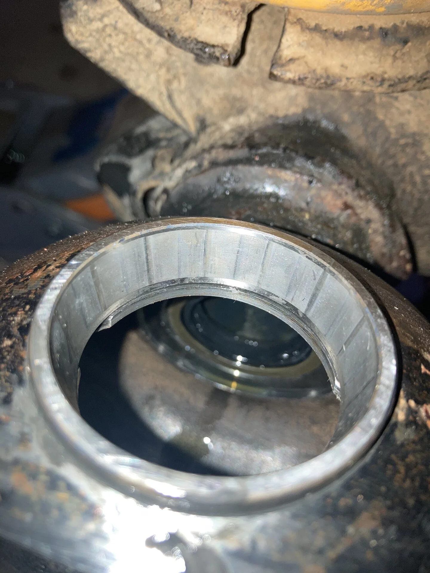 What would cause the trunion bearings from the knuckles to wear so they have a flat spot when the knuckles are in straight position?
