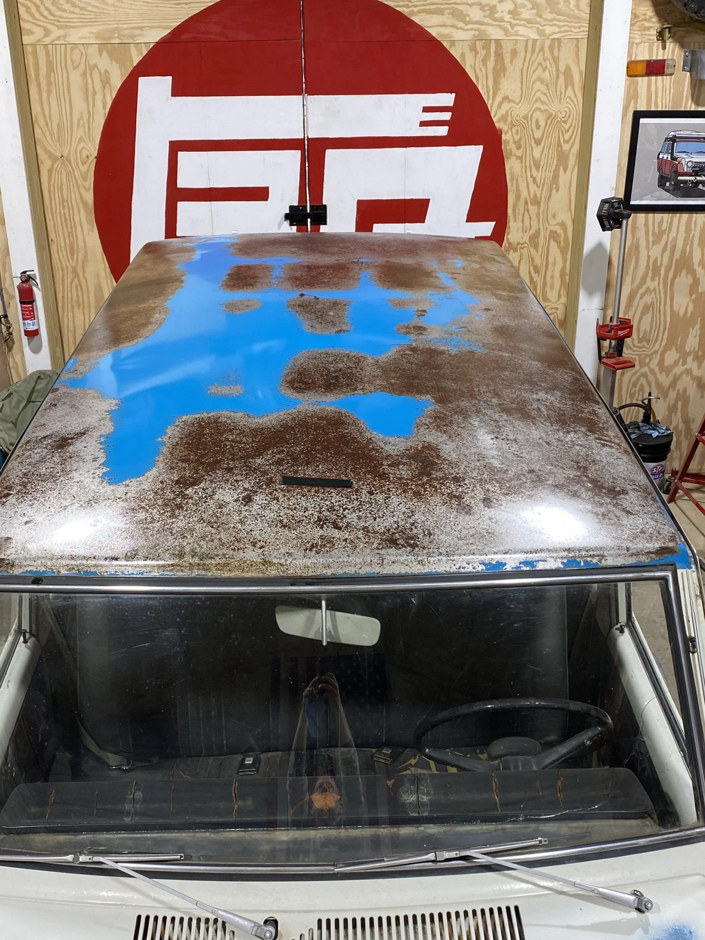 I got the drivers corner of the hood done and quit. I’ll likely have to polish the paint now since im striping all the wax off with the Goof