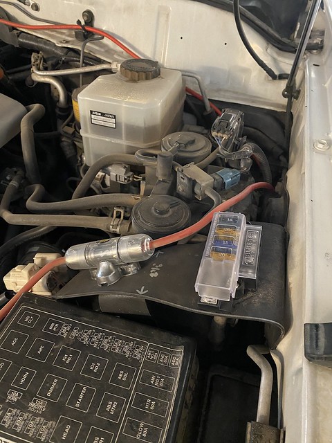 Oh that looks really good I like that a lot. I have two of those exact same style inline fuses running my two stereo amps, and they’re currently just dangling down next to that firewall grommet unsupported. It’d be great to get them up to a centralized and more accessible location like that where I can then possibly add a fused relay bank