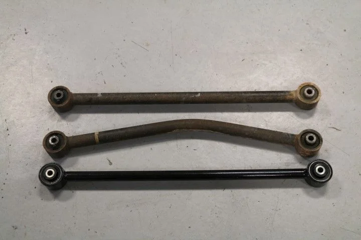 Stock on top, bent in the middle and the new HD model on the bottom. While the HD unit is actually a slightly smaller diameter, it's solid HD metal and uses poly bushings and a sleeve versus the stock rubber bonded style.