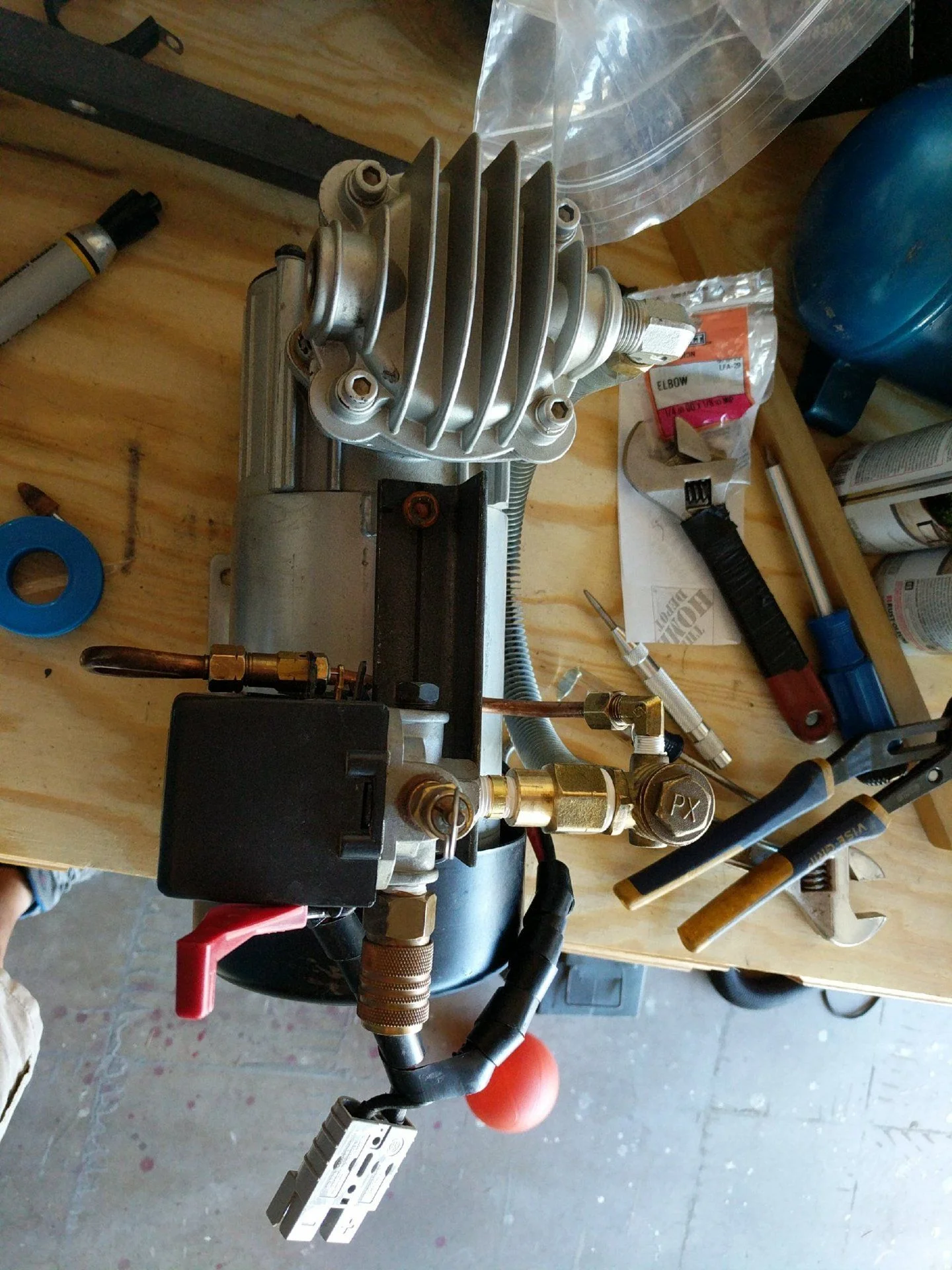 So after reading pages and pages about this compressor I installed one. I went to the store and bought a 90° elbow for the hose connector end. But when I went to put it on I was disappointed in myself for wasting that time. To orient the regulator for use with my spare next to the compressor was simple and all parts already came with the Puma. It is as simple as moving the safety relief valve to the regulator's spot and mounting the regulator straight out. Maybe I missed this same post somewhere in this thread, but it seemed like everybody was putting a lot of effort in making the 90 turn.