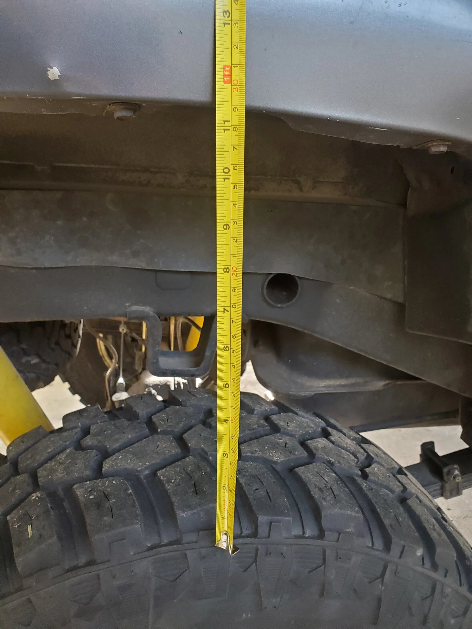 Bottom of frame to top of rear axle- I misread this and my measurement was taken to the bottom of the metal bump stop: 12"