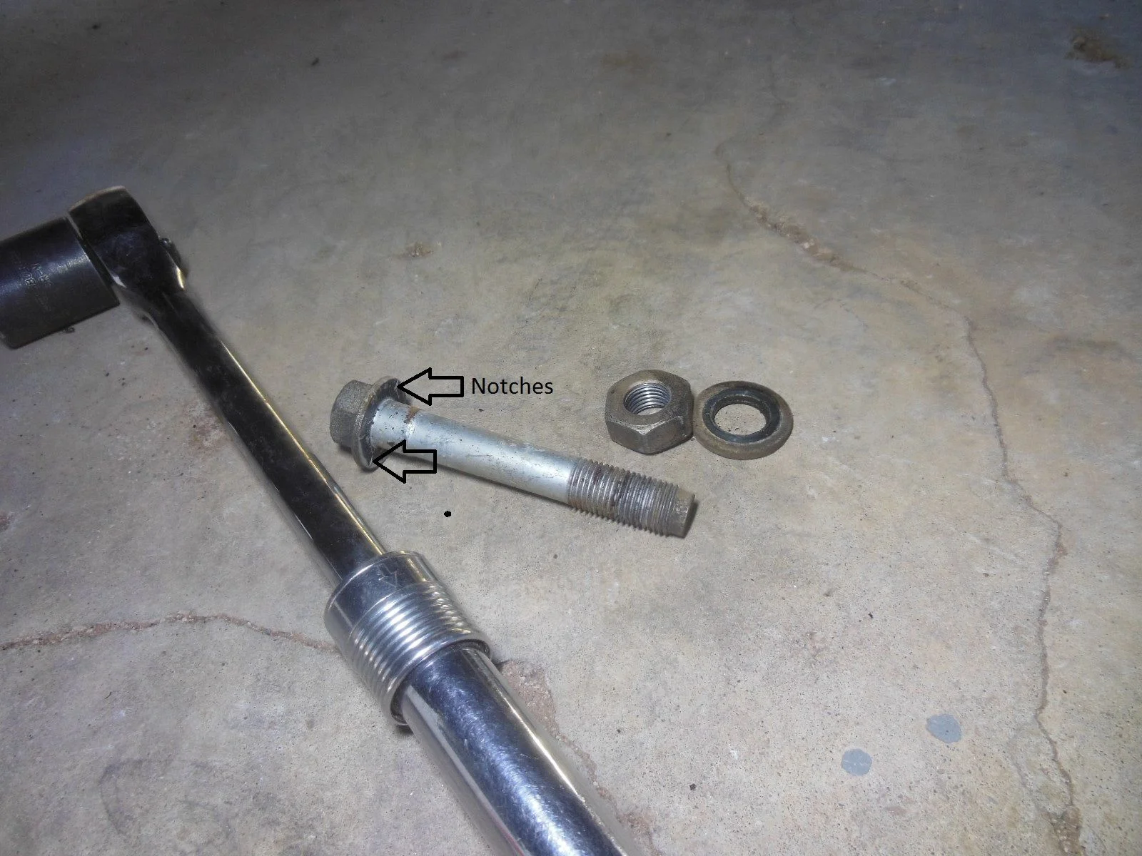 7) Remove the NUT (24 mm) and NOT the bolt (see image: The bolt has 6 small notches to grab the mounting bracket and will not turn when its tight) ALWAYS loose/tight the 24 mm NUT