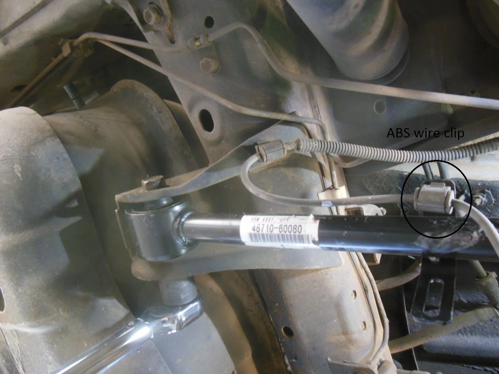 4) Remove ABS sensor wire clips from upper control arms and remove the brackets (12 mm) holding abs wire at the axle end of the upper control arm