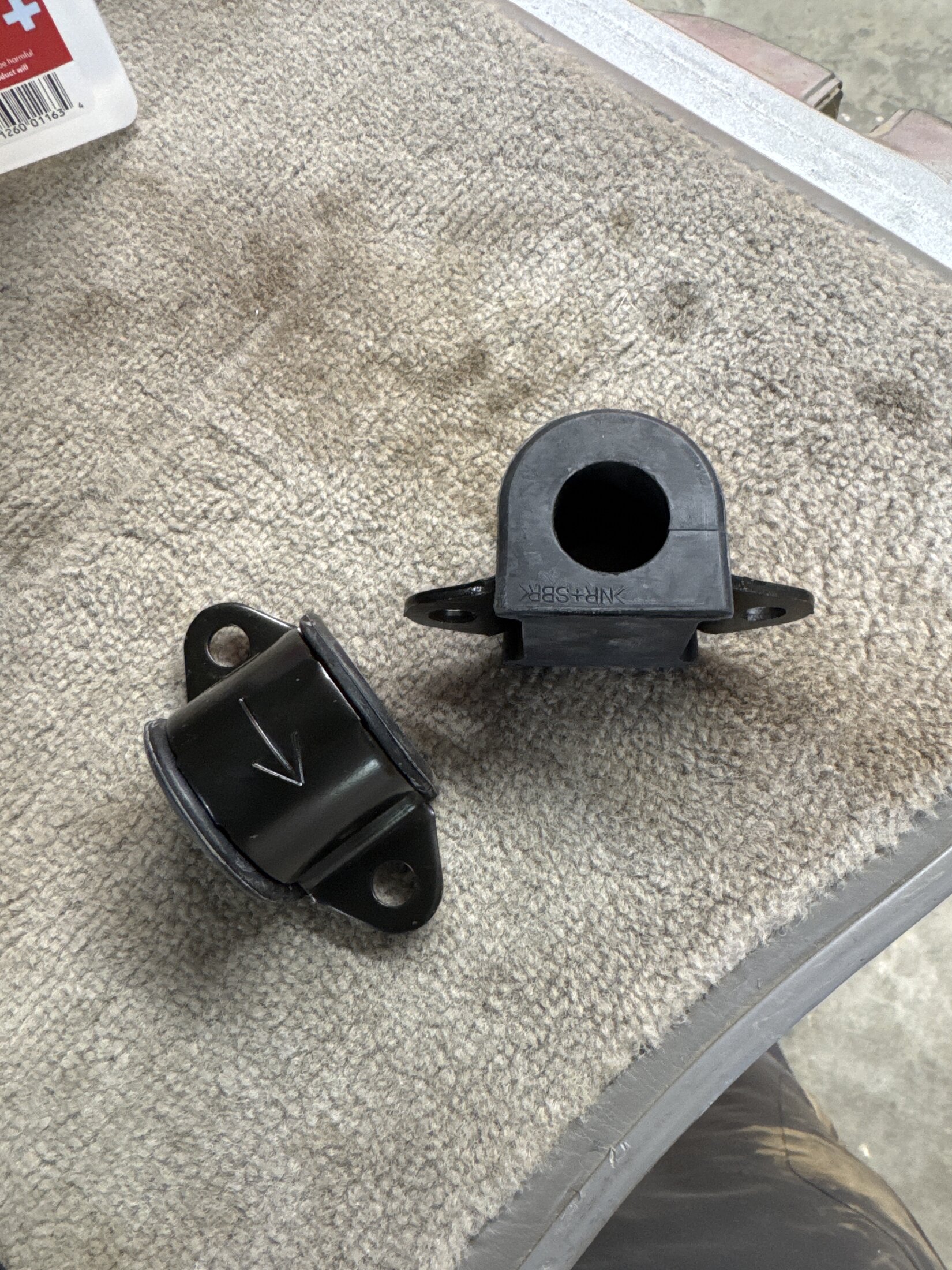 Out of curiosity, are those Toyota brackets and bushings? I just did my bushings only.Replacing the rear sway bar mounts/bushings and was wondering which way the arrow goes, as well as where the cut/split in the bushing goes in relation to the arrow.