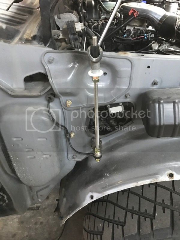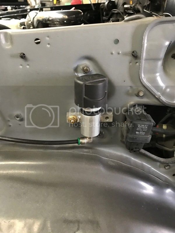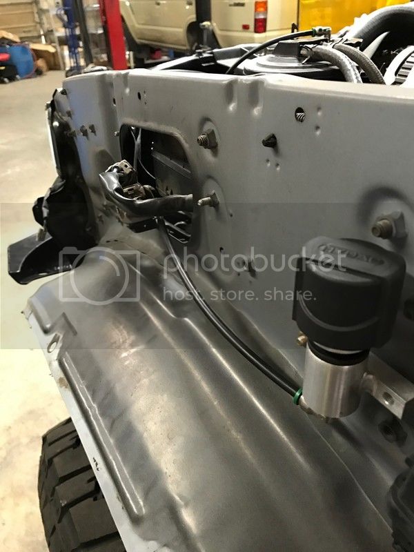 Driver side I mounted the pressure relief valve for the power steering reservoir, used an existing threaded nut in the fender ran in a long bolt slid on the mount and capped it with a serrated flange head nut…