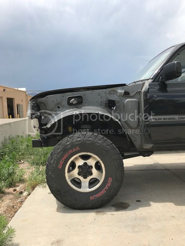 Profile shot shows how big the front fender wells are in an 80, appears there might be enough room for 37s up front!