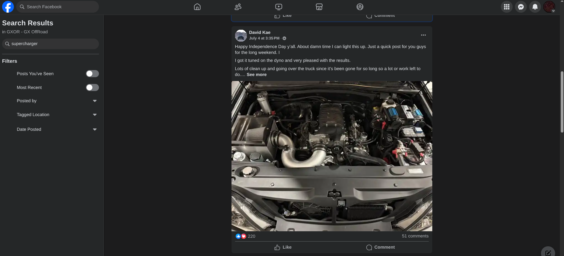 He posted a couple of clips in the GXOR Facebook group. You could barely make out the SC whine over the exhaust.
