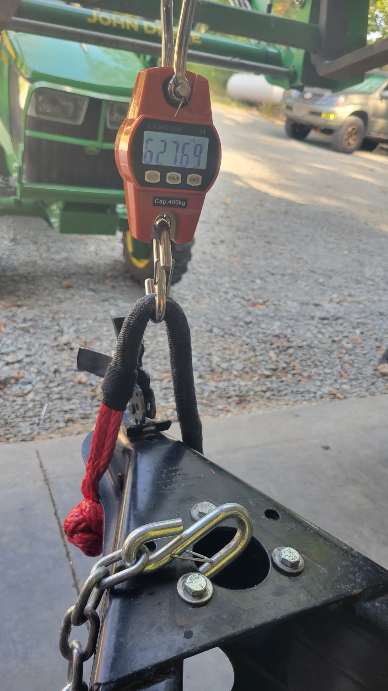 After my spring woes, I had a suspicions that the tongue weight on the camper was quite high. A Chineseium scale from Amazon confirmed my thoughts. It was darn near 630#! On a trailer that's only 3,200# empty! I'm sure this contributed to the premature demise of my Ironman rear coils. The thing is that the rig towed so nice and stable initially that I didn't even bother to check the tongue weight! Lesson learned.