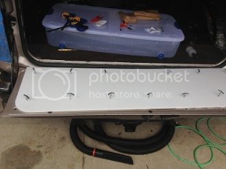 Fall of 2014 I ditched the step sliders for custom high clearance sliders from Monarch Metal Design. Finally got my ham license and installed a radio in the center console where the CD Changer was. I modified the LabRak antenna mount to accept the ham antenna. I also installed the LabRak cutting board in the tail gate.