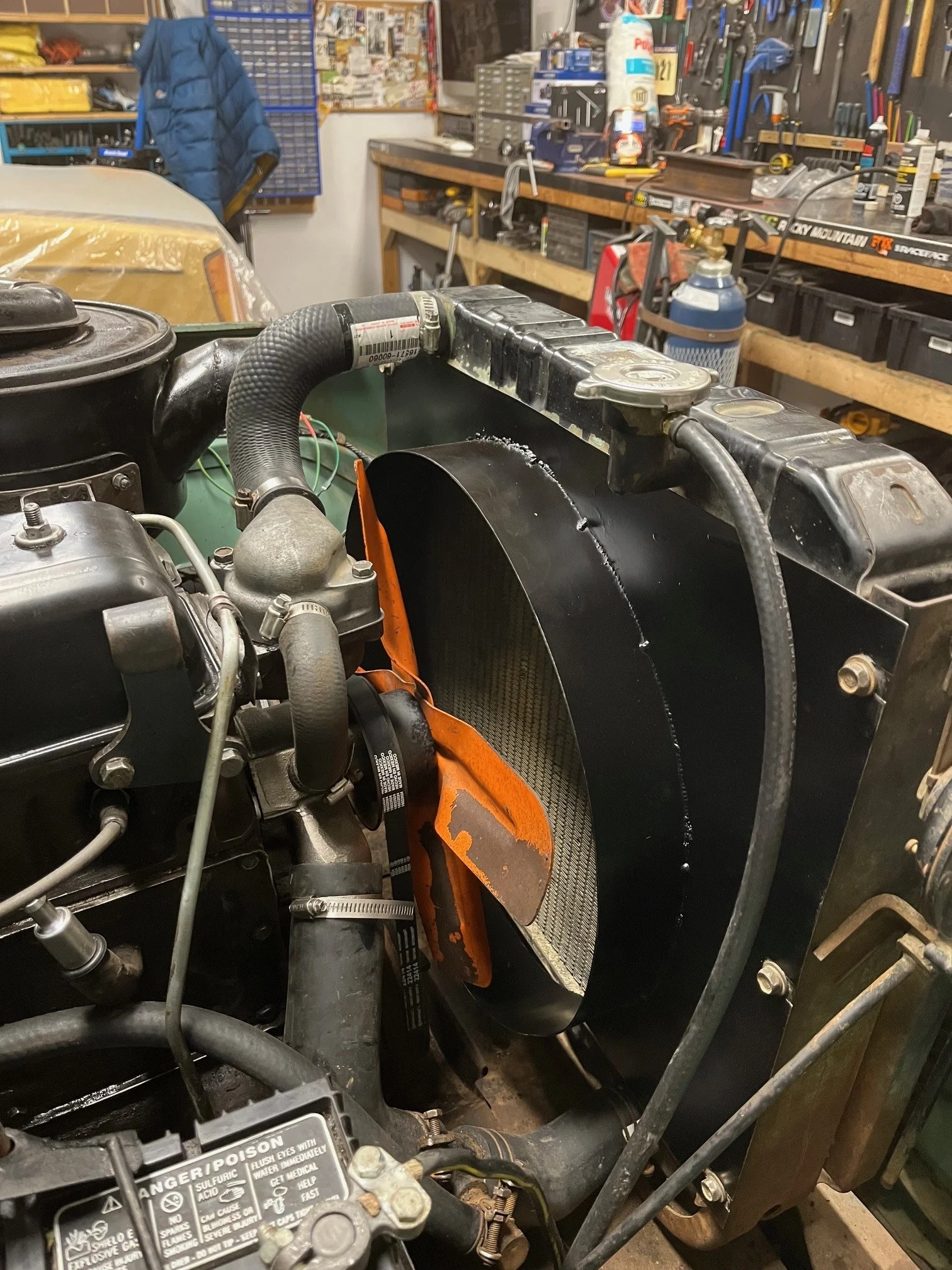 Anyway. Over the past couple of nights I've been working on building a fan shroud. Is it a masterpiece of engineering and welding? No. It is not. Is it made from scrap steel that I salvaged from my old furnace that I had to replace last year? Yes. Yes it is. So basically I have zero dollars into this thing, which helps make up for the $100 that I flushed down the toilet on the driveshaft fiasco.
