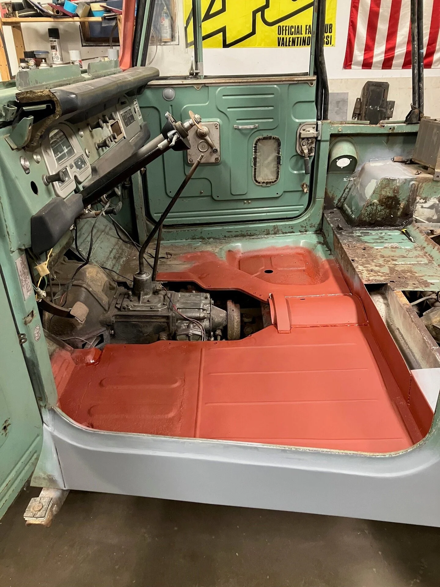 Here is the brace welded in place behind the rocker. Probably some of my worst welding yet, frankly! Haha. I blame the tight quarters (the passenger side of the truck is crammed against the wall) and poor lighting. Anyway, it'll do the trick. I also plug-welded the floor pan flange to the rocker.