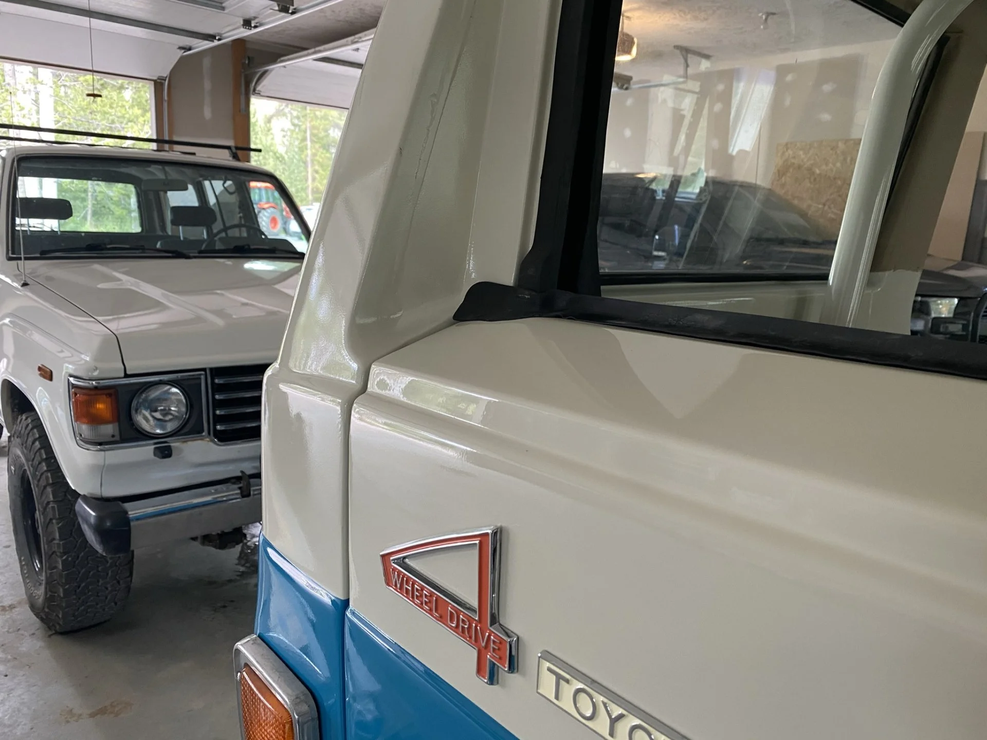 I had no idea Toyota dropped the rear sway bar in '78 or '79!My son and I took several trips to the Landcruiser Heritage Museum and asked @cruiserdan a bunch of random model year specific questions all of which he knew the answer too. They have a very nice 78 FJ55 with something like 11k miles on it. I wanted to see it in person and take pics so I'd have them to reference to. I planned to do stock reproduction upholtery and whatnot, but went off the rails a little bit with that when it came down to it. More on that later. It was helpful to see where the stock factory paint transitions were. Dan let me crawl around underneath and take pics of the sway bar and such as mine was manufacturered just a few weeks after they quit making the sway bar standard.