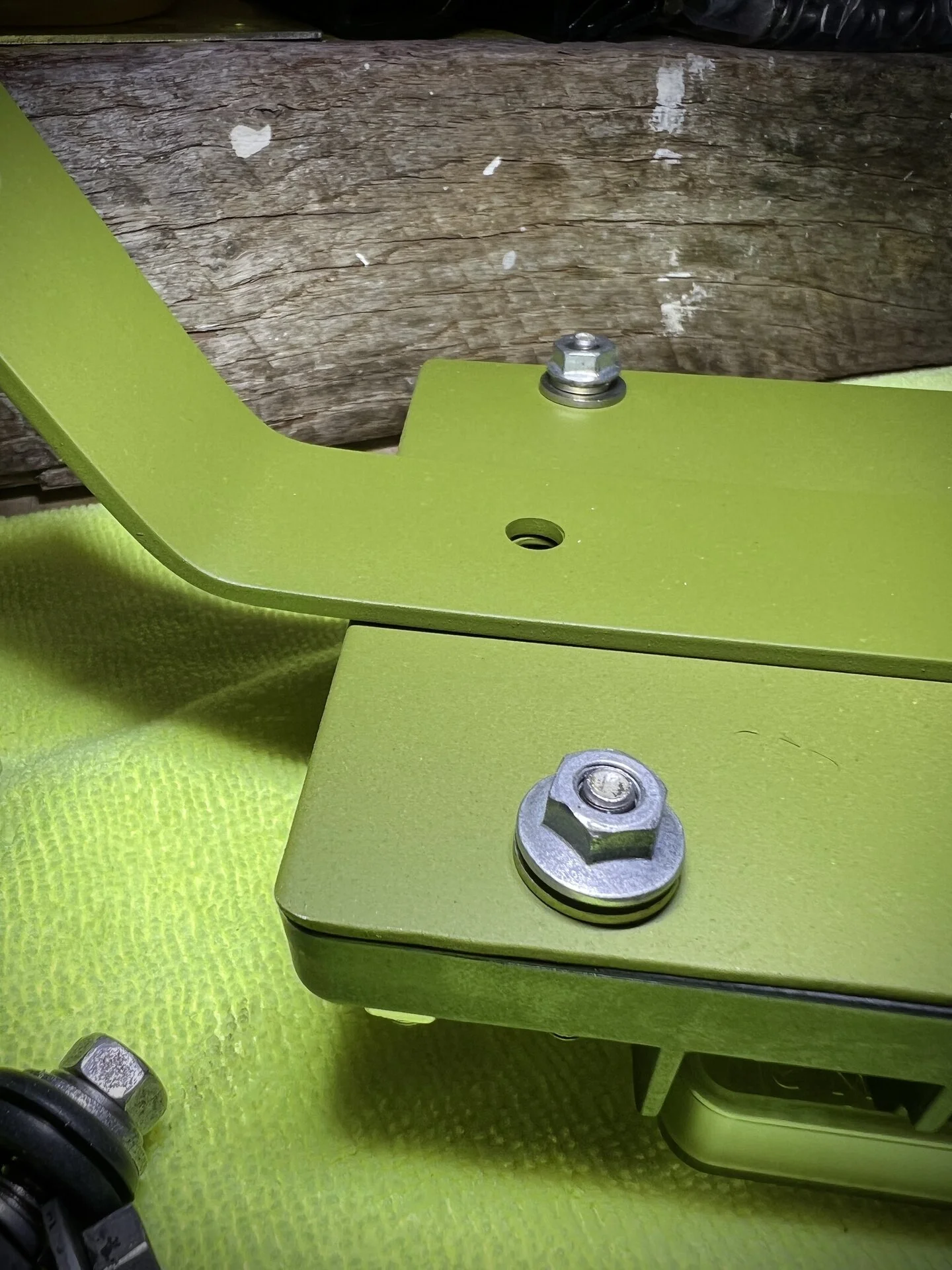 here is the almost final fuse nest after fabricating the mount. I’ve been using green zinc base coat on stuff that takes a beating. Used on below waterline marine and aircraft corrosion resistance “green”. The mounting bolts were actually the M6 to hold my coil packs to the valve covers on the 5.3. These were handy.