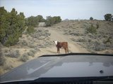 Eventually we gave up and headed back to the highway, it turns out the road we took was through a wash and had some of the most challenging driving of the trip. It was one of those gravely sandy roads with tall berms, the kind of road you have to keep your speed up on or risk slipping into the ruts and high centering. The wash started right after this.