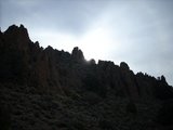 Saturday morning we were up and eating breakfast when they opened at 6:00, by 7:15 we were on the road. About 50 miles east of town we turned off of HWY6 on to NSR375, the Extraterrestrial Highway. The turn to Reveille is about 15 miles from the intersection, but I wanted to take a look at another canyon further down the road so we continued on until we reached the road to Fang Ridge. We messed around there for a while, our gas was a concern so we didn't drive all the way up to the ridge, but we got close enough to know we would like to come back and explore it.