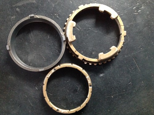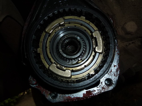 the view looking from the front, with the front housing sub-assembly removed. This synchro gear is the last part added before replacing the housing.