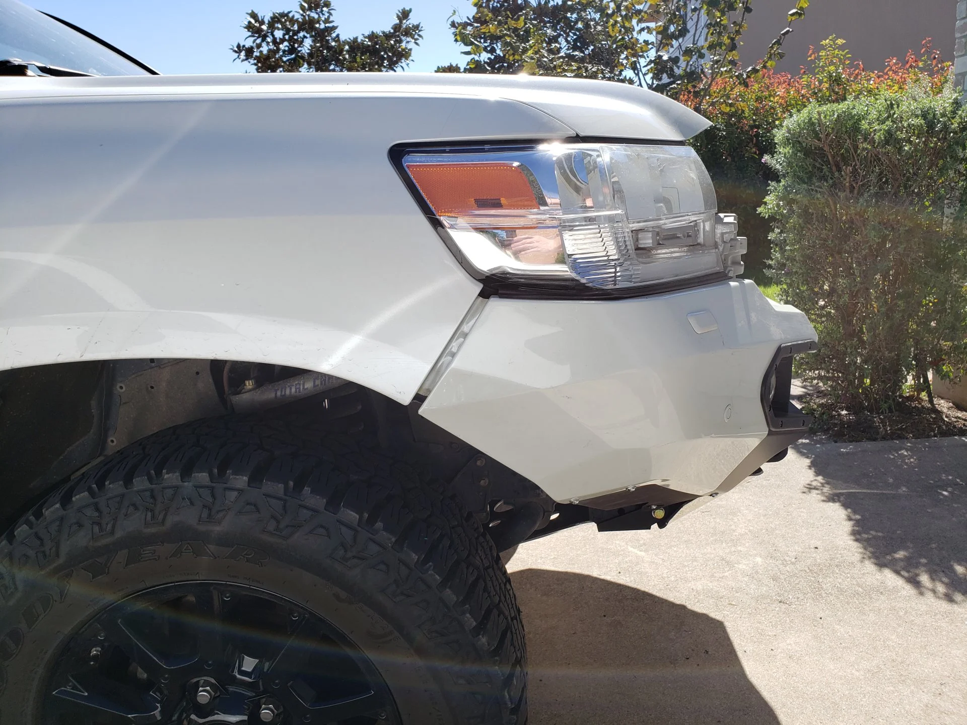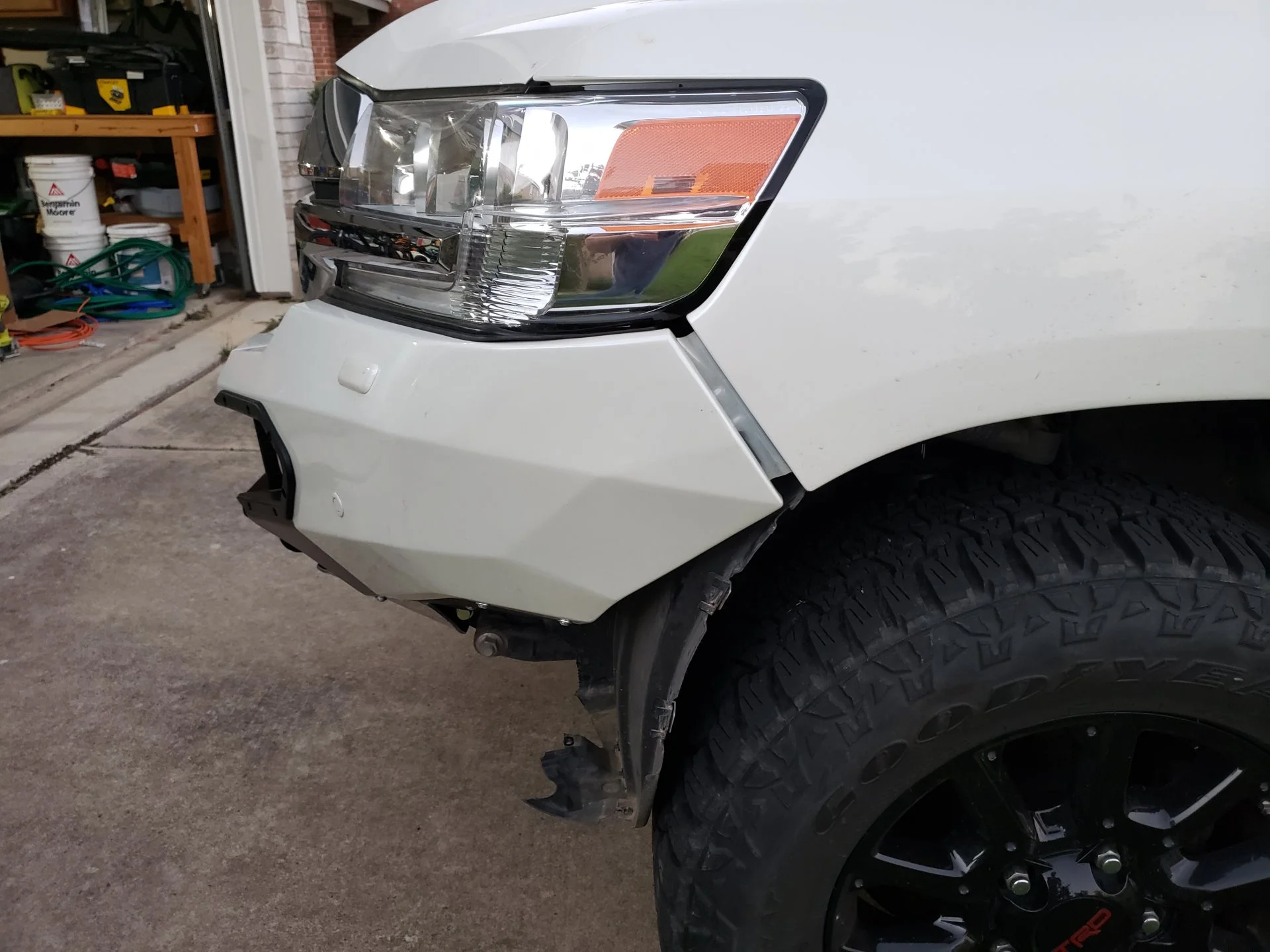 Also, with the rubber trim piece that goes between the bumper and the headlights, don't make the flap go under the headlights. Doing that does make it look a little better, but it also essentially eliminates the gap between the headlight and bumper so that on bumps the independent body & frame movements has the potential to crack your headlight housings. So instead, make the rubber trim flap stay out of the gap, basically so it just rests against the front of the headlight.