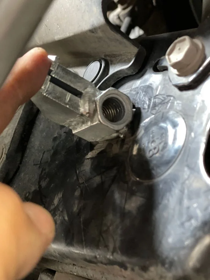 Passenger side frame rail hole with bracket not fitting in.webp