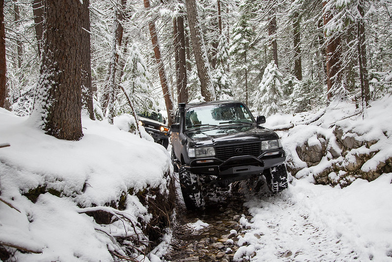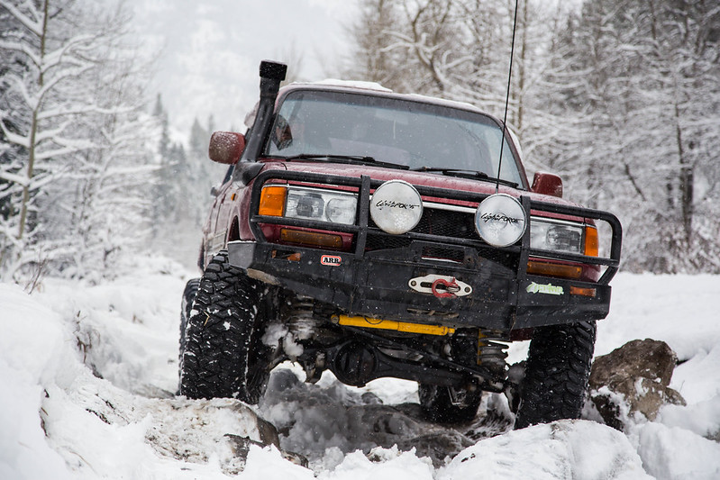 Thanks a lot! Keep stopping by, hopefully I'll get some snow wheeling days in over the Christmas holidays. A few updates on the 80... Ordered some OEM parts for replacing all the seals and louvers on the rear sliding windows. I can see my seals are pretty weathered so I'm hoping that there arent any scary rusty secrets hiding underneath. I actually plan on using the sliding windows so I need these to be working properly/leak free. I replaced my relay and tie-rod with Slee's replacements, they are ridiculously beefy. All new OEM TRE's all around. All parts were original so my steering has already tightened up dramatically. I had enough with my ProComp shocks and ordered a set of OME L's. I was also still running the factory steering stabilizer so the OME should be a welcomed addition since the OE unit had almost no resistance when I pulled it off. Currently running so steering stabilizer until I can get my OME shocks painted. Sorry can't do the yellow, but looking forward to some extra droop and some nice, not-blown, shocks! Copy and Pasted from another thread - in the process of trying to swap this steering wheel in. Rear of the 99-02' IS300 Airbag - single stage http://www.flickr.com/photos/retrospectphoto/11209542933/ 20121203-IMG_2086.jpg by RickaShay24, on Flickr Guts of the IS300 Wheel - you can see the wiring for the up/down shift buttons running in with the Cruiser Control Module wiring. http://www.flickr.com/photos/retrospectphoto/11209435156/ 20121203-IMG_2087.jpg by RickaShay24, on Flickr I sure hope I can make it work, it's very similar to the MKIV Supra steering wheel! http://www.flickr.com/photos/retrospectphoto/11209433584/ 20121203-IMG_2088.jpg by RickaShay24, on Flickr Bad news: I might have stripped my transmission drain plug. I replaced one of the tranny cooler lines and needed to let some fluid out after slightly overfilling. It was -30 Celsius and I honestly barely torqued on the nut but now it's spinning freely. Thankfully it's holding fluid but I dont trust it. I think there might have been an issue before because I've never stripped something with the feeble amount of torque I applied. Hopefully I just found an old issue that was unknown or not disclosed. It would suck to have it leak while on the trail! Trying a new drain bolt today and if that doesnt work I'll have to drop the pan and tap the hole - not cool. And a photo to keep you entertained, we've been having some gnarly weather - 30cm of snow in 12hrs. http://www.flickr.com/photos/retrospectphoto/11183742724/ 20121201-IMG_2072.jpg by RickaShay24, on Flickr I'm also selling my 7/16" x 100ft TJM synthetic winchline, aluminum fairlead, and hook if anyone is interested. I have it for sale in the classifieds but need it gone. It's brand new and never been outside. As I said, I just can't do yellow. It's all in the details! I'm flexible on the price, here is a link to the FS ad: https://forum.ih8mud.com/sale-parts/786714-7-16-x-100ft-tjm-synthetic-winchline-aluminum-fairlead-hook-new.html