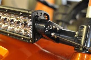 Lighting on any rig is important, for safety and visibility.* Seeing the trail ahead when rock crawling or watching the trail ahead when desert running requires a product that will withstand a great deal of abuse and offer both spot and flood capabilities. * The 30″ Rigid “E” Series Light Bar met all of these requirements…shockproof, combination spot/flood and low power draw.* By using the ATR Dash Brace, the Rigid LED mounts safely below the roofline and away from the front bumper, minimizing glare and potential damage….when you choose a light of this quality, you want it protected!