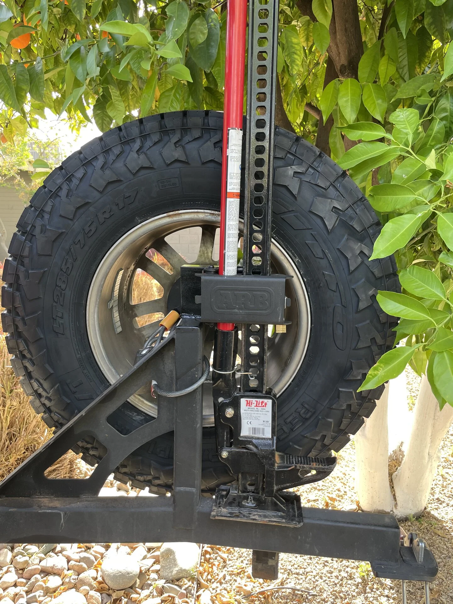 Oh one great solution the boys at Higgy's came up with was re-using my ARB BASE Hi-lift mount and attaching to my tire swing arm. Rock solid, lockable and great looking. They basically fab'd and welded a L-Bracket to the tire carrier, then bolted 1 (of the 2) ARB mounts to that.