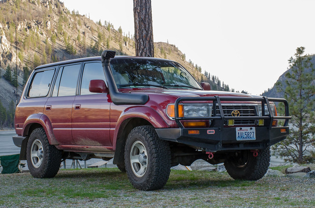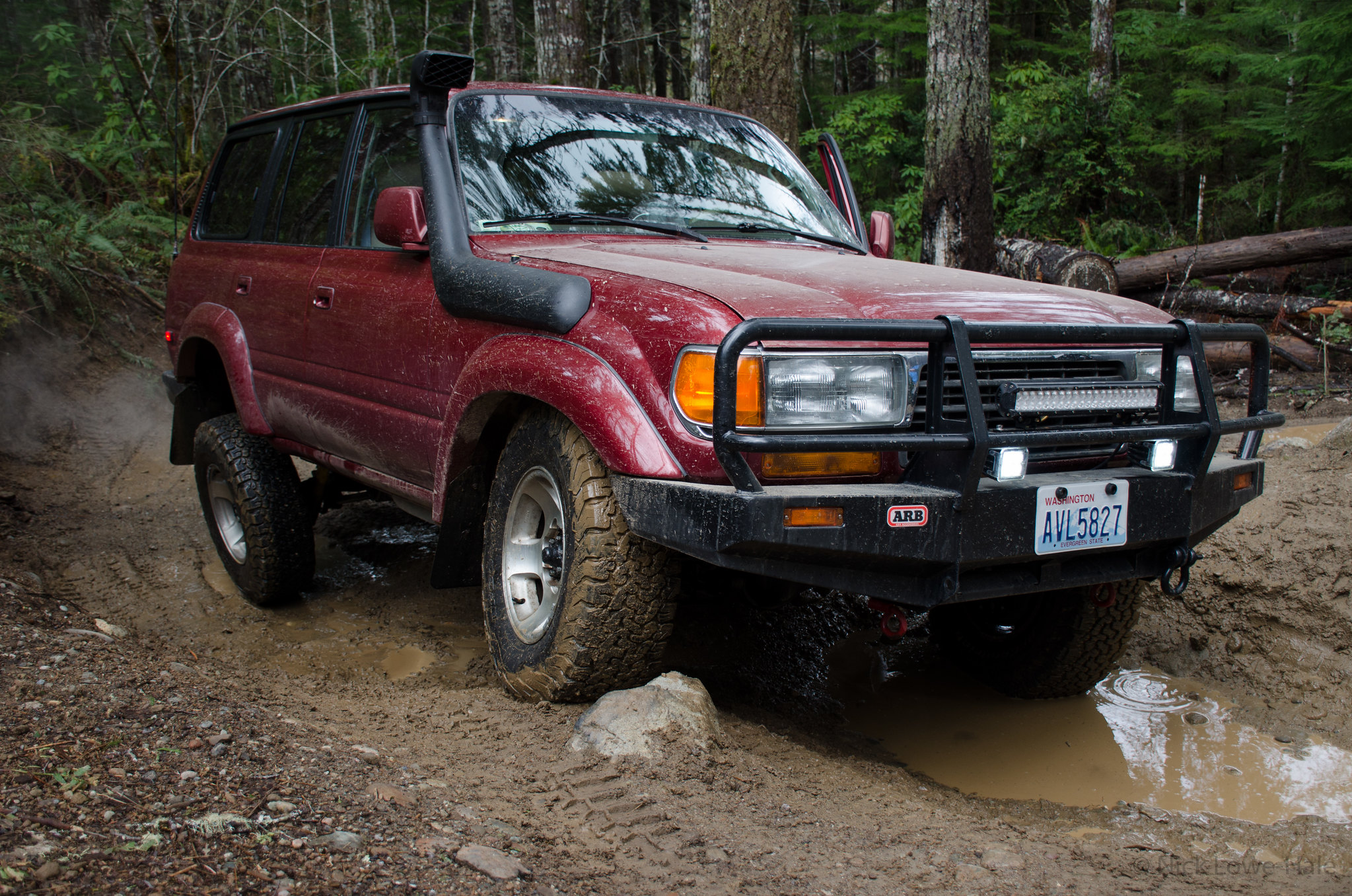 About a year ago I decided my old Volvo sedan wasn't helping me get to where I wanted to go or haul what I needed to haul (read: got a wheel in the air while going to a trailhead, no damage, but still not the best). Just so happened that a family friend was selling their FZJ80 for a good price and I couldn't pass it up. It came with a non-winch ARB bumper, running boards already off, a roof rack, and had been nicely maintained by the previous owners (I think 2).