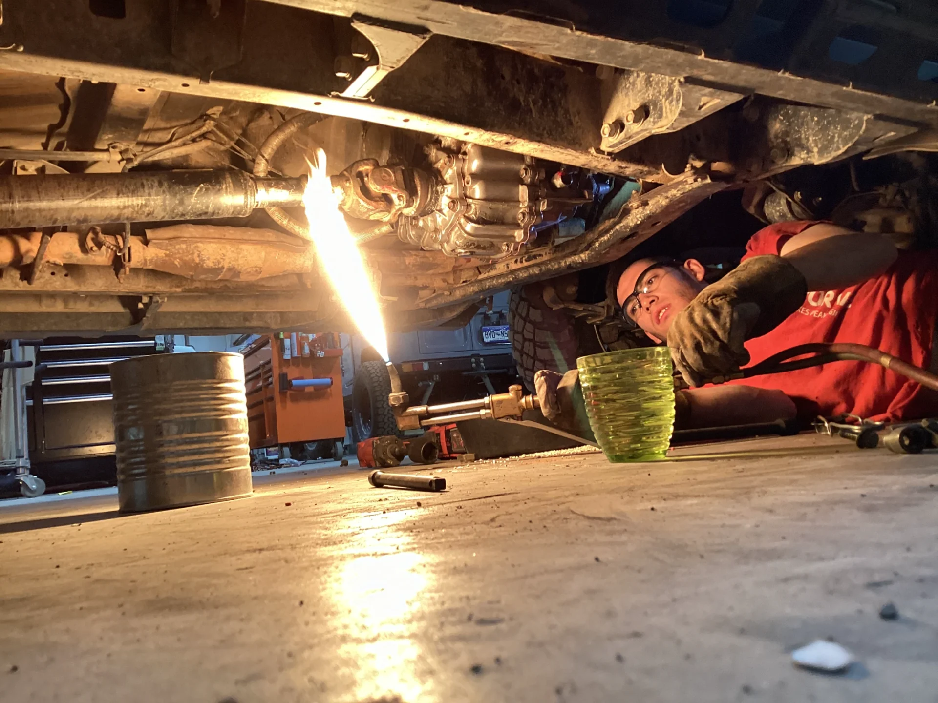 The part that broke on my T Case while out wheeling at home 8 days before I was to leave for SAS6. On the red box you can see the part that he formed & later welded on to the broken shaft.