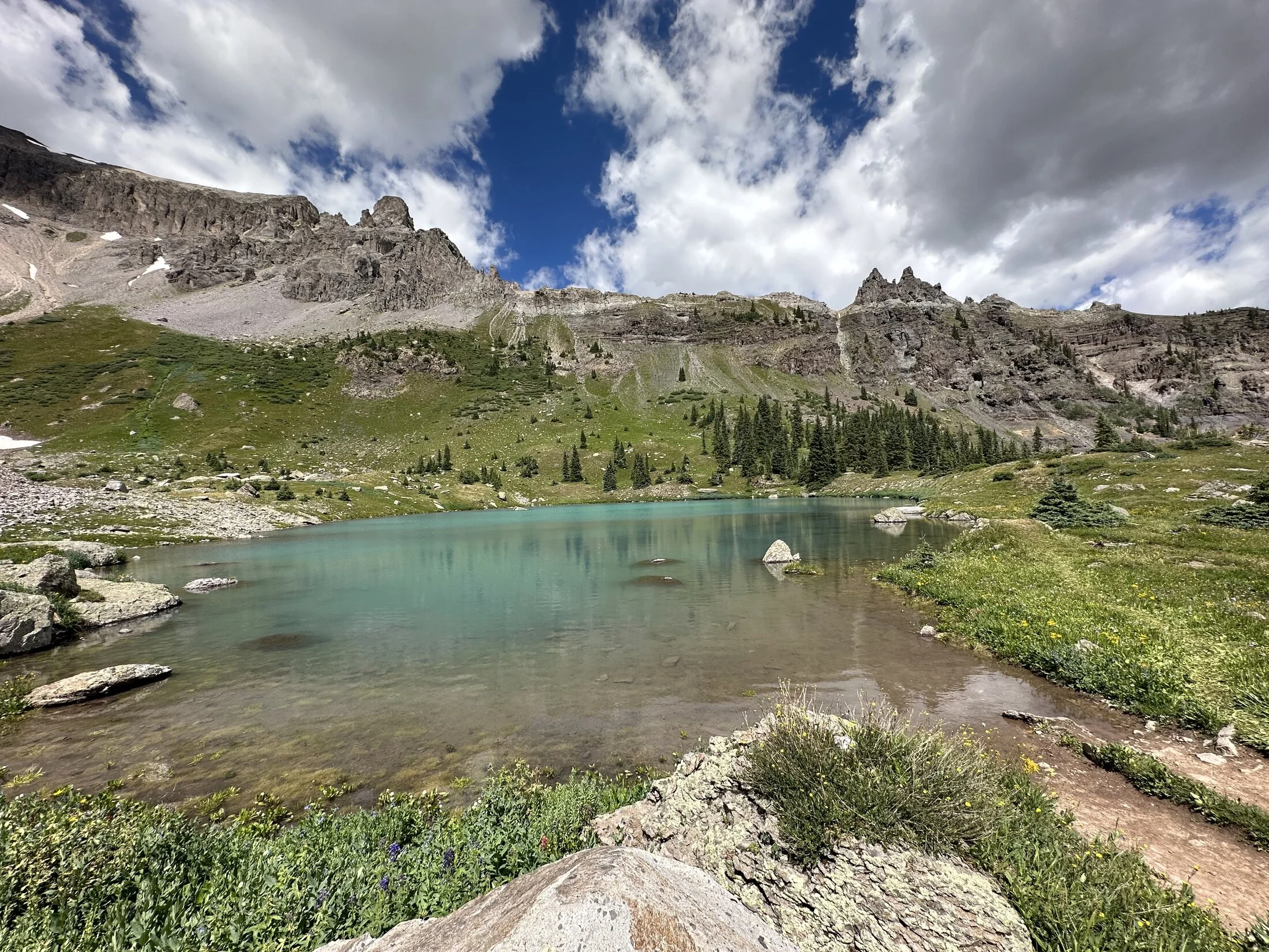 I thought we were going to have to winch MooseCaboose up one spot. I was doing the teeter totter on two diagonal tires. She’s just so dern long. I don’t think I’ve been up there in the day time.I want to camp up here too. I can't remember the lake. We went up here in the dark last year and that was a little sketchy for me. I'm not sure I could get the trailer up the one section without a winch either.