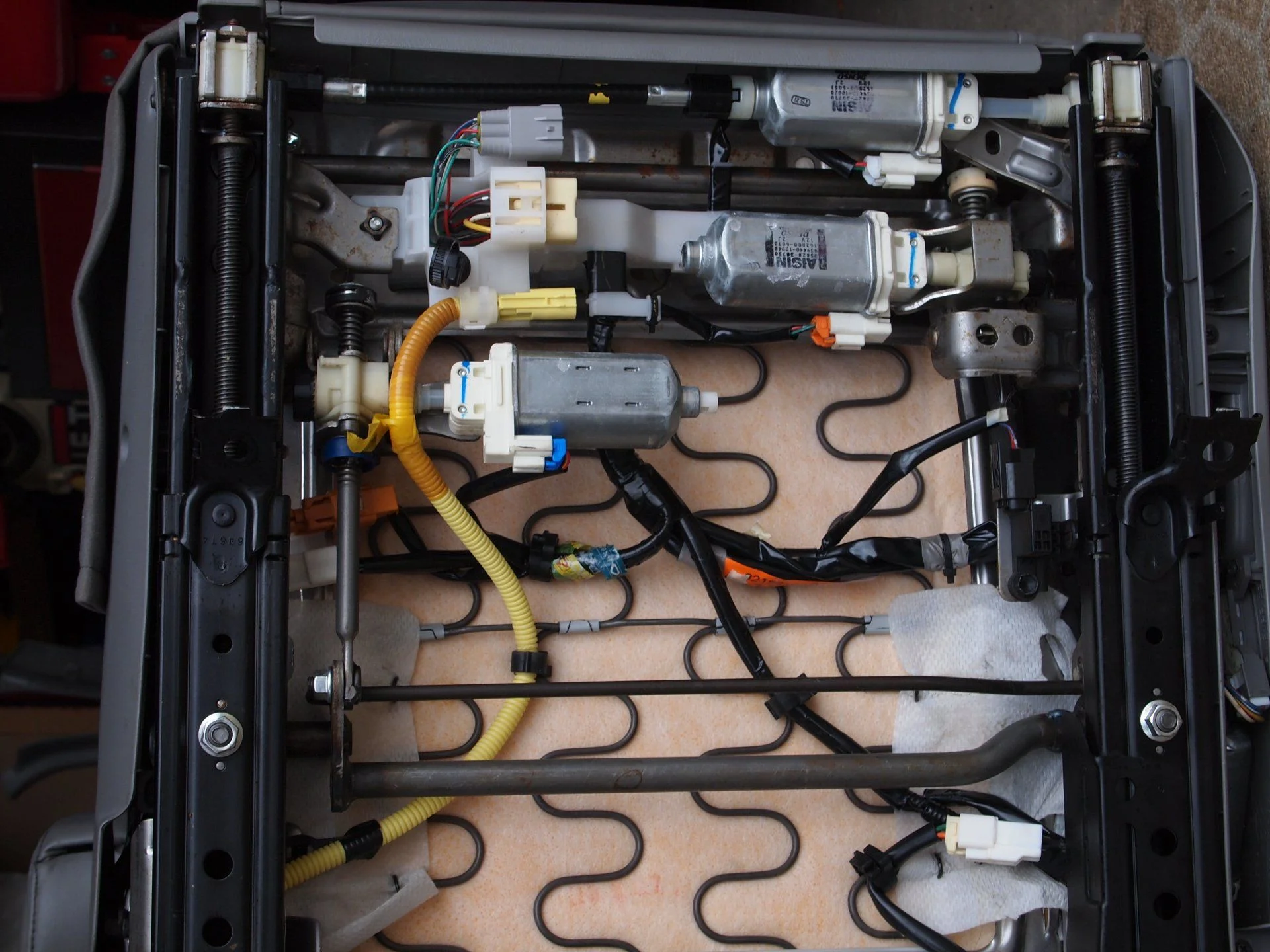 It is a 15 minute job pulling out. Spread plastic covers, from back along seat rails releasing rear pins/clips, then pull straight out release front pin/clips. Remove 4 bolts. Lift front and prop up with piece of wood, so you can disconnect wire housing(s) and release tie strap (don't remove just release with small prob inserted into back.