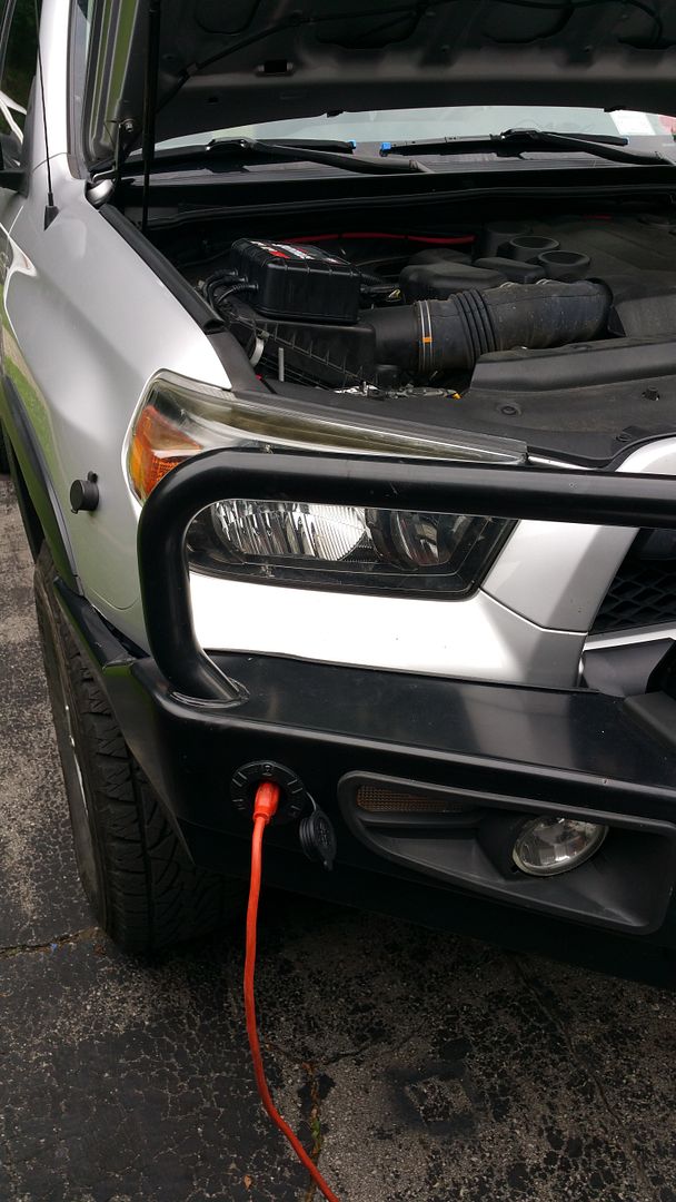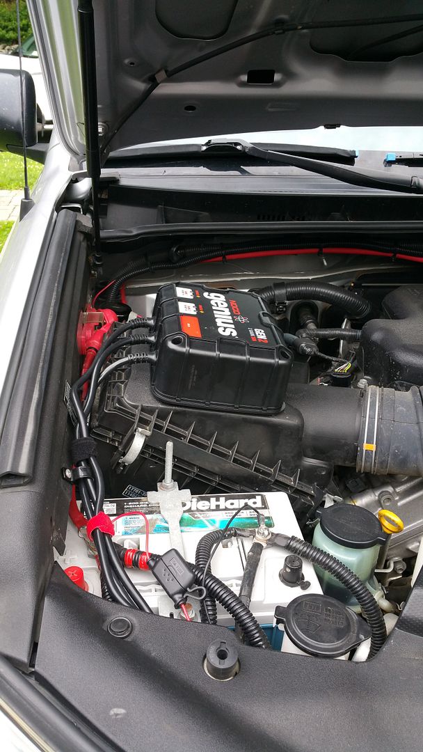 I kept mine in the garage plugged in with 63q Edgestar running 24/7. Battery was always charged. The fridges don't take much power.Looks tidy!
