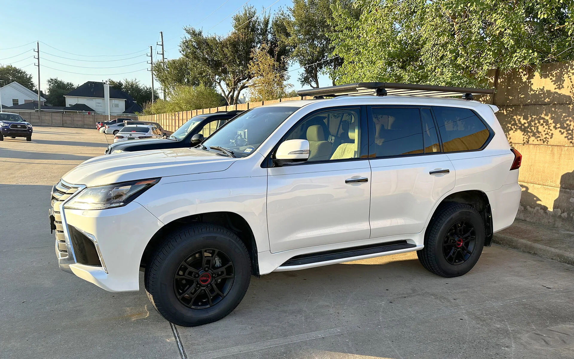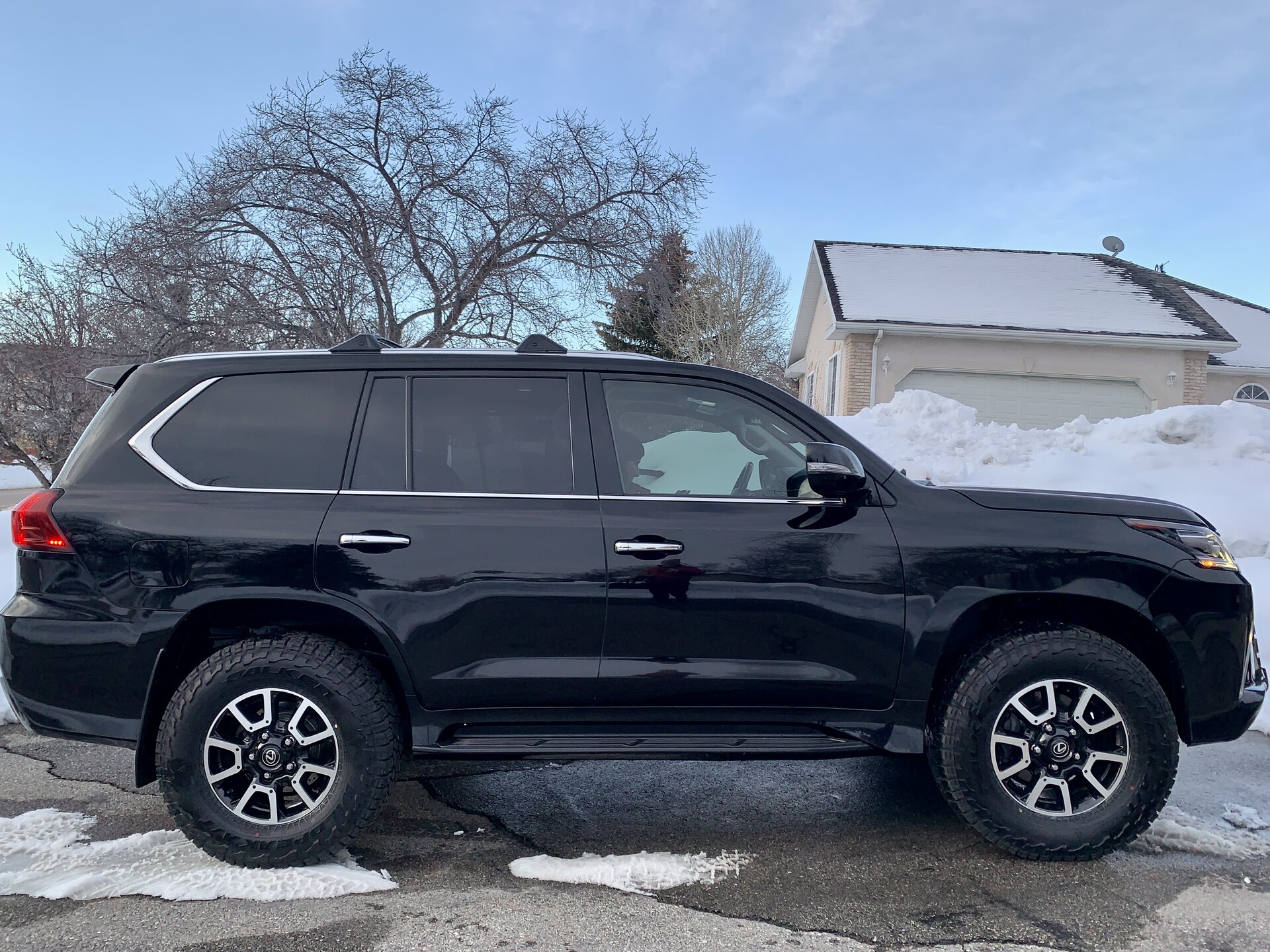 Thus:I think some of the best looking wheels on an LX are the black/machined aluminum wheels from a Toyota TRD Off Road Tundra.