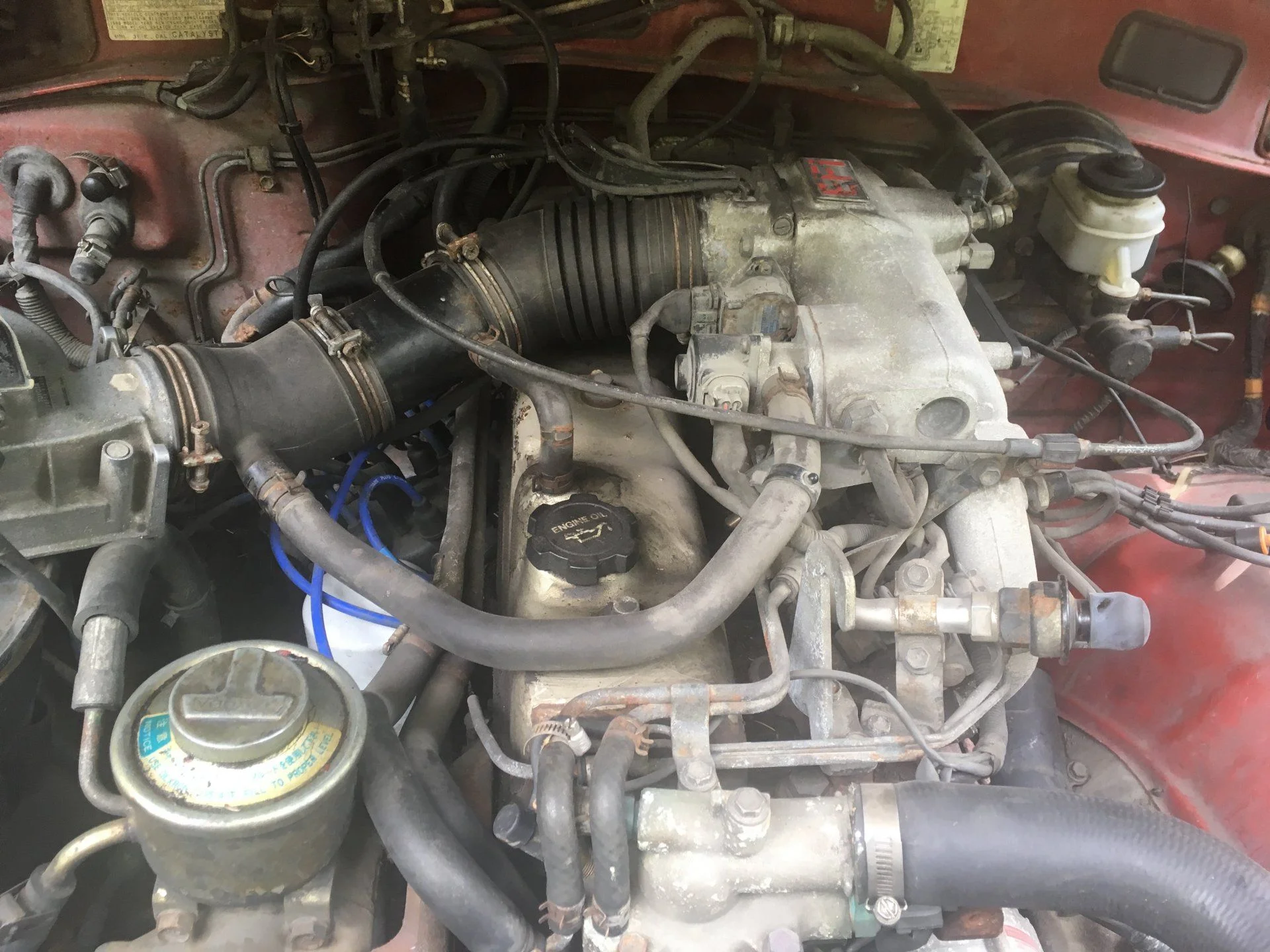 Desmogged 2F with a 3F aircleaner assembly. Soon to get 3FE cast iron exhaust manifolds.I using a city racer carb now. The combo runs great at 322,xxx miles.