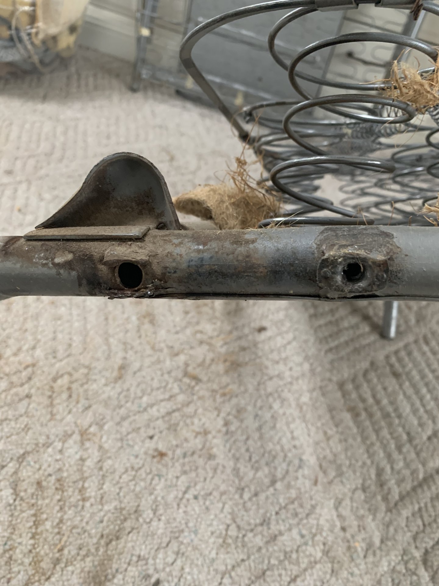 There’s also a broken spring tab on the back section that will need welded. Luckily the broken piece was in the seat.