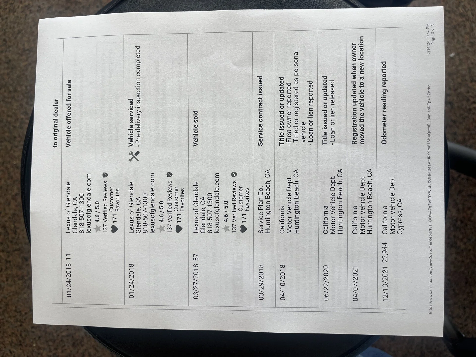 Car was serviced at Lexus of Westminster until late 2021 when the warranty expired and I have been taking it to My local Toyota/Lexus mechanic since then with all service records available for both the dealership and local independent mechanic. I have recently replaced the front brakes when it went in for its annual oil change