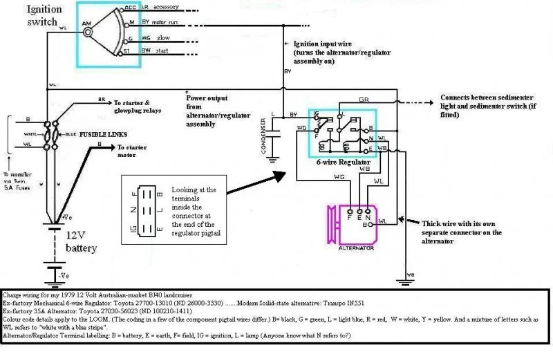 But I'm not 100% sure that the internal wiring of the regulator is correct as I've drawn it. Toyota seem to vary this according to which diagram you look at - and some clearly contain drawing-errors. (It would help if I knew exactly how the regulator does its job.)