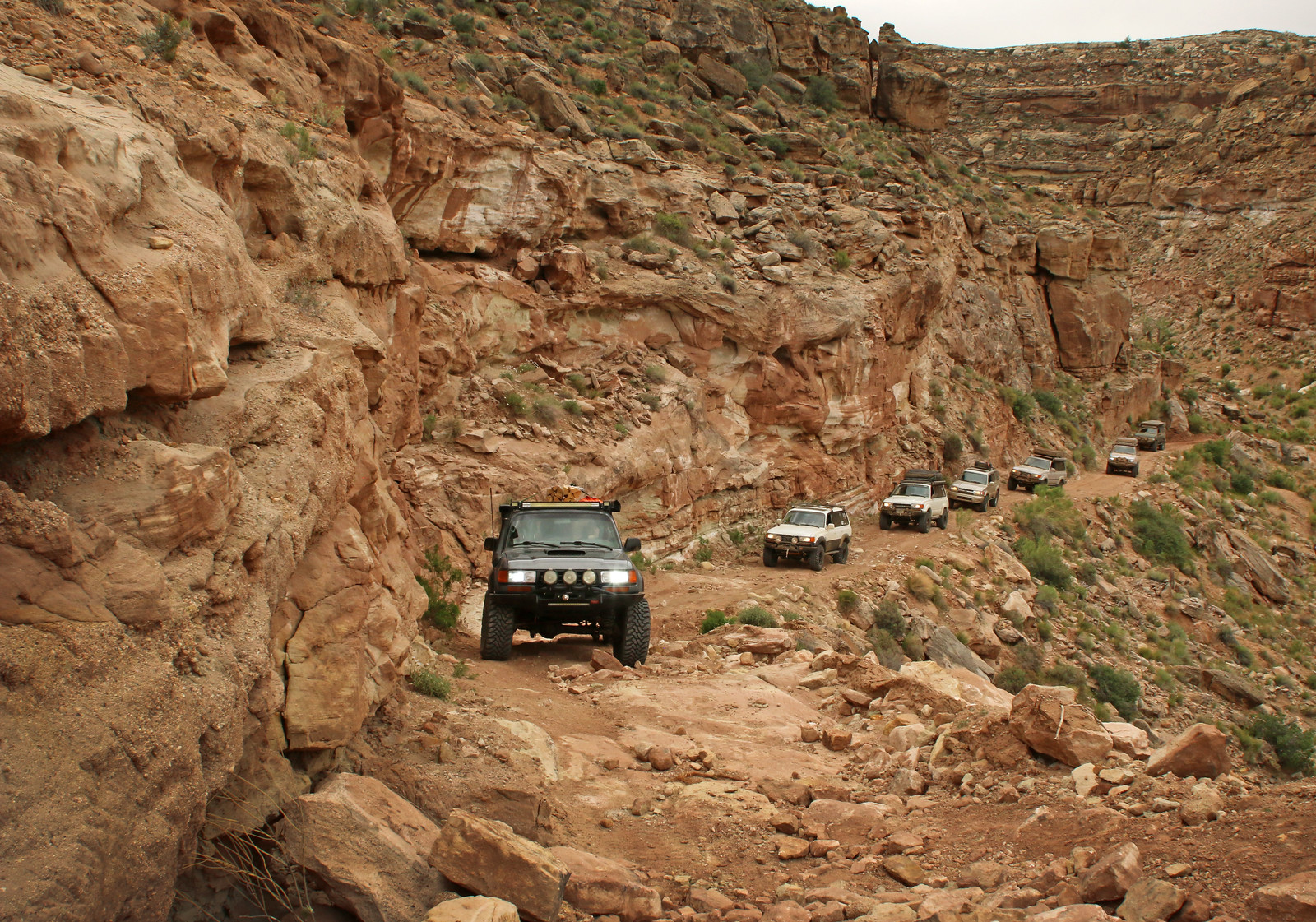Typical trail conditions for these trips is generally mild to moderate wheeling. The most difficult part of the trip will be coming out through Elephant Hill in Canyonlands. Cruise Moab rates the Elephant Hill trail 5/10.