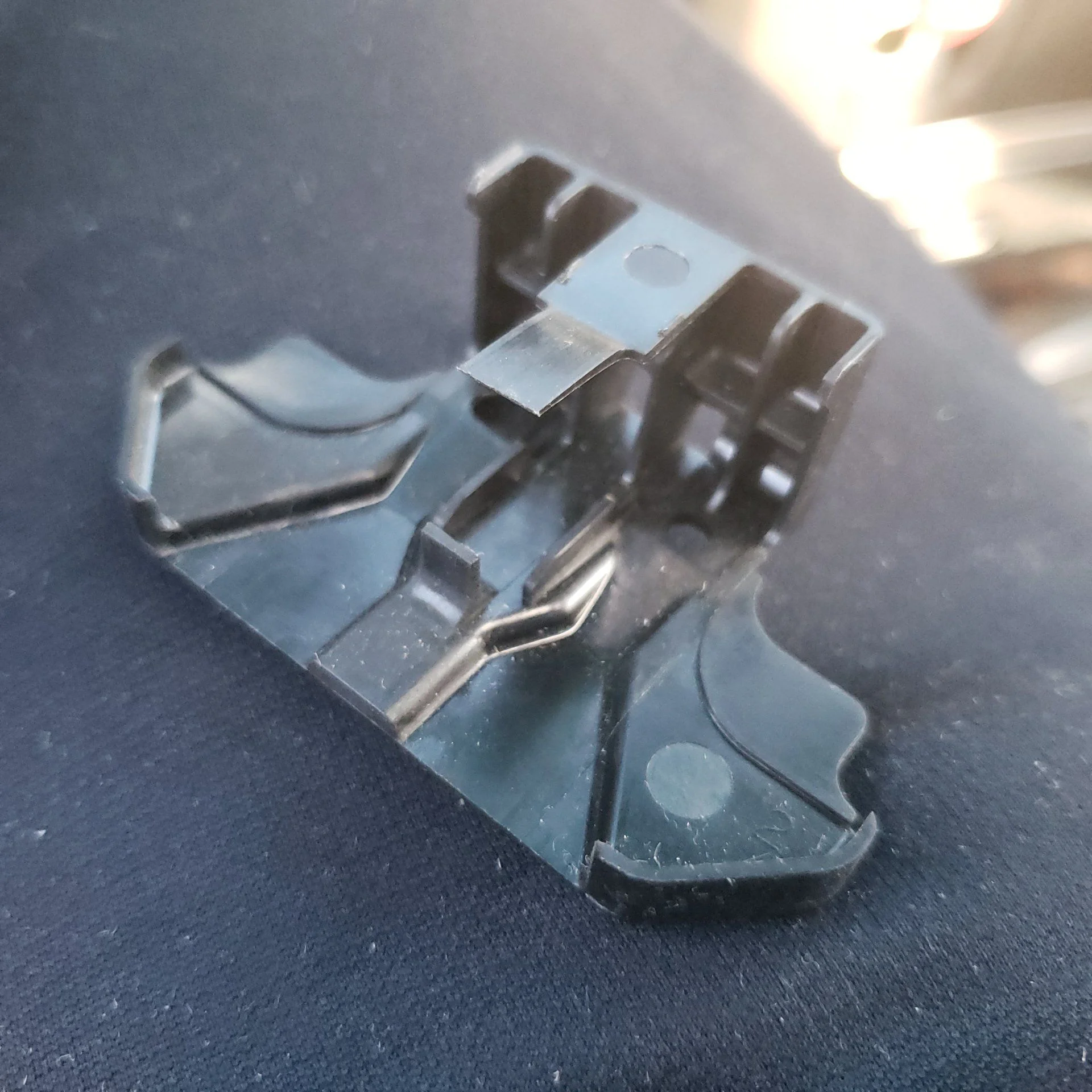 Kind of looks like the hinge piece for second row seat secure strap holder. Located under the second row seat. It's a flimsy piece meant to store the strap when not in use. I can never figure out how to properly store the strap anyway and the hinge piece gets in the way.